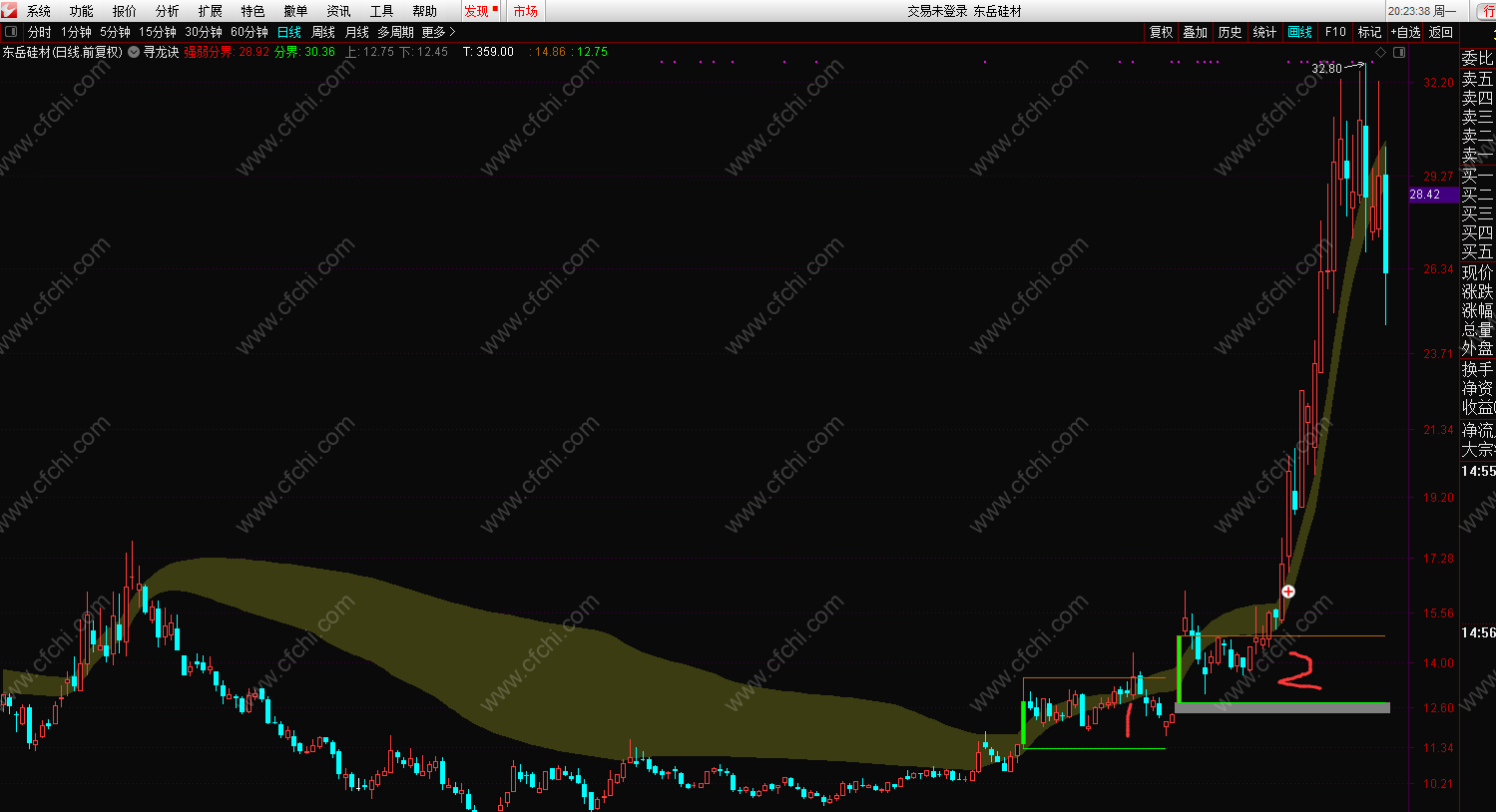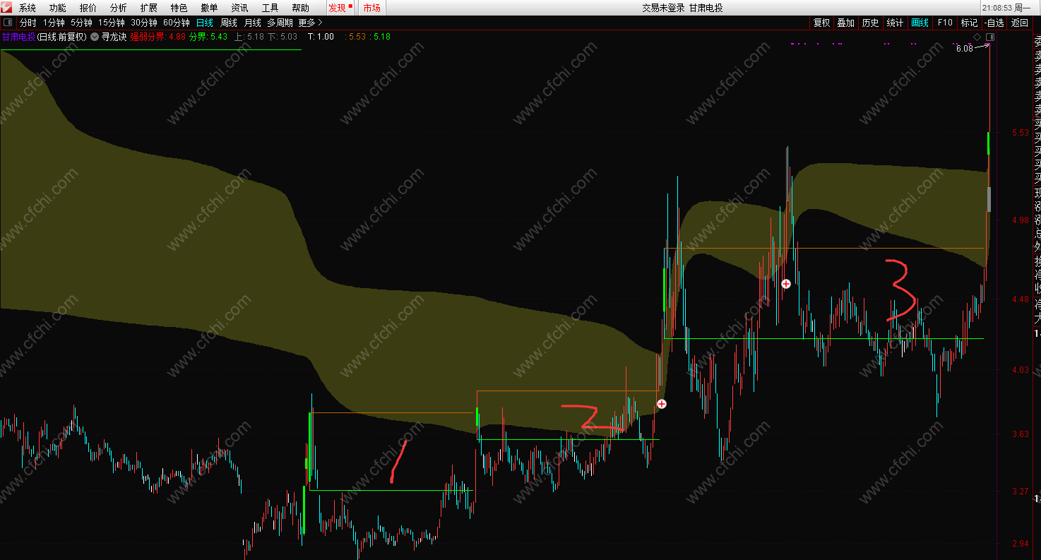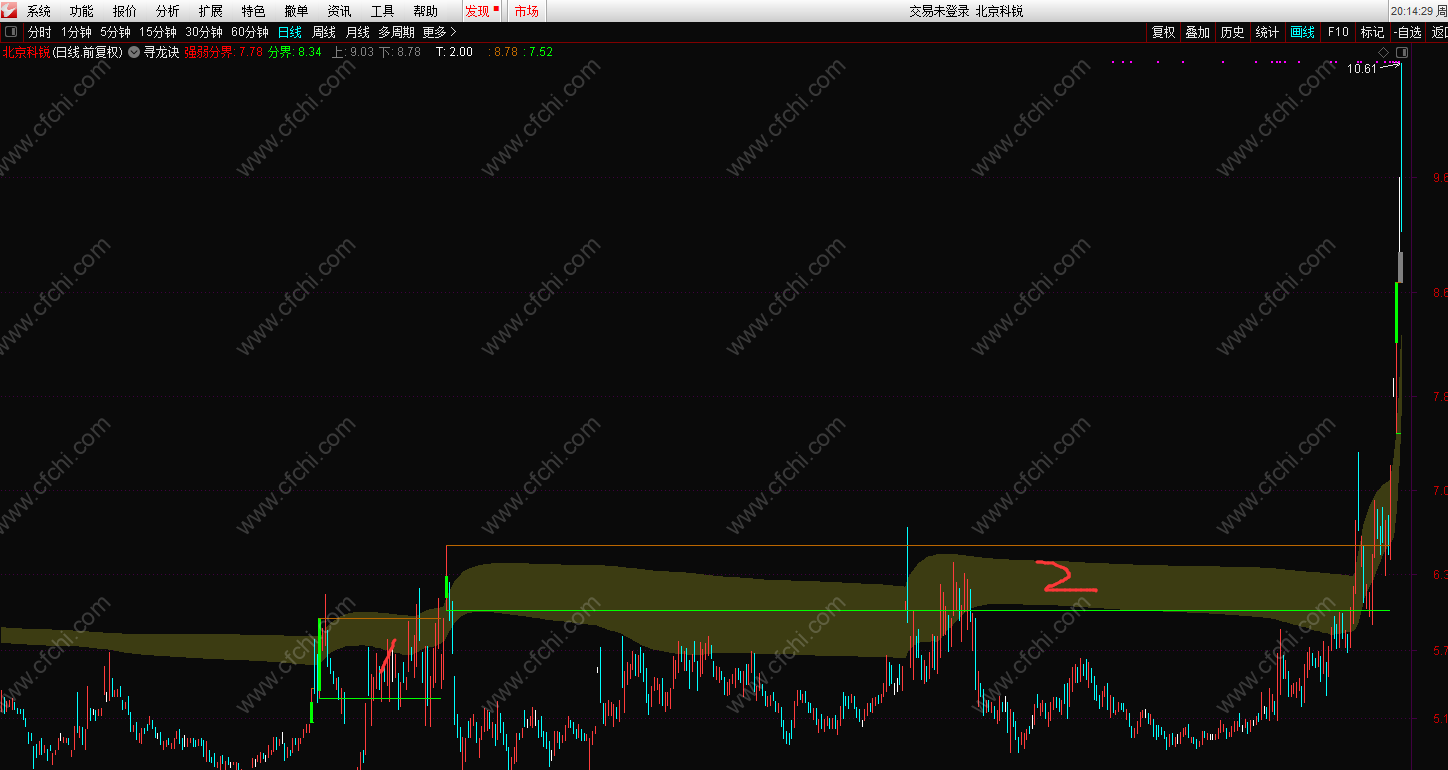 (【寻龙诀】财富新品精华指标之墨轩理想《寻龙诀》主图指标公式,通达信,加密,画线用到未来)