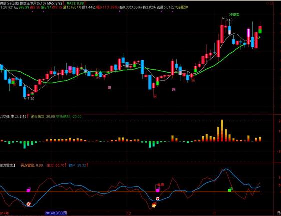 买点雷达:(VARB< 20 AND VARC< 25 AND VARD> 50 AND AR<70)*30,LINETHICK2,COLOR0078FF;