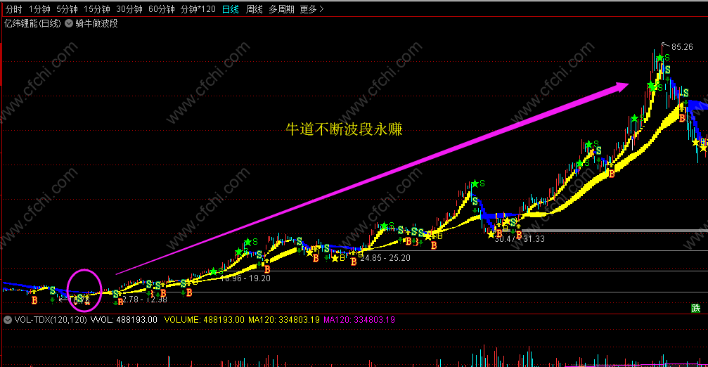 (【骑牛做波段】骑牛做波段(指标、主图,通达信,贴图)无加密 ,想赚钱,就要做波段)