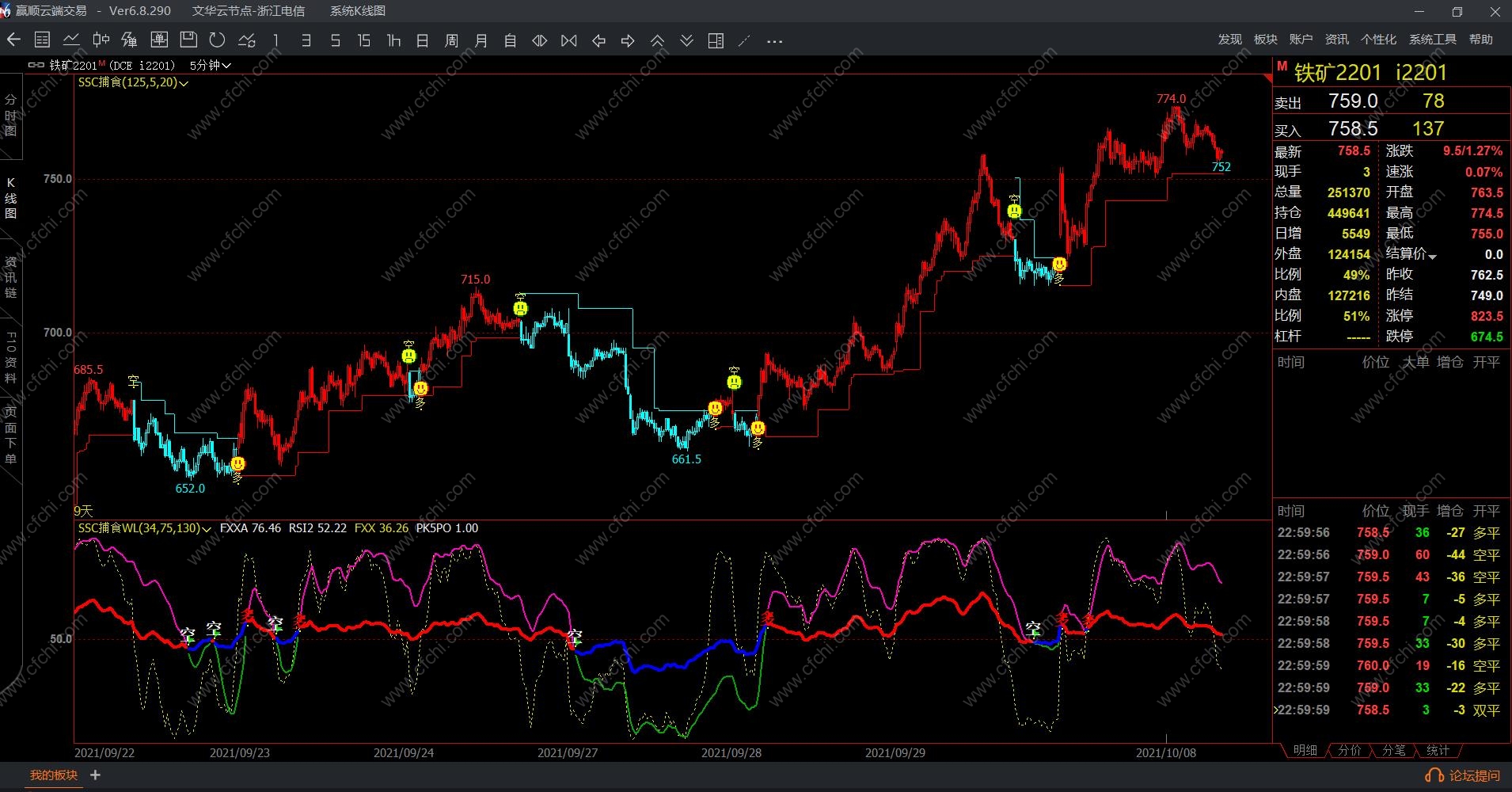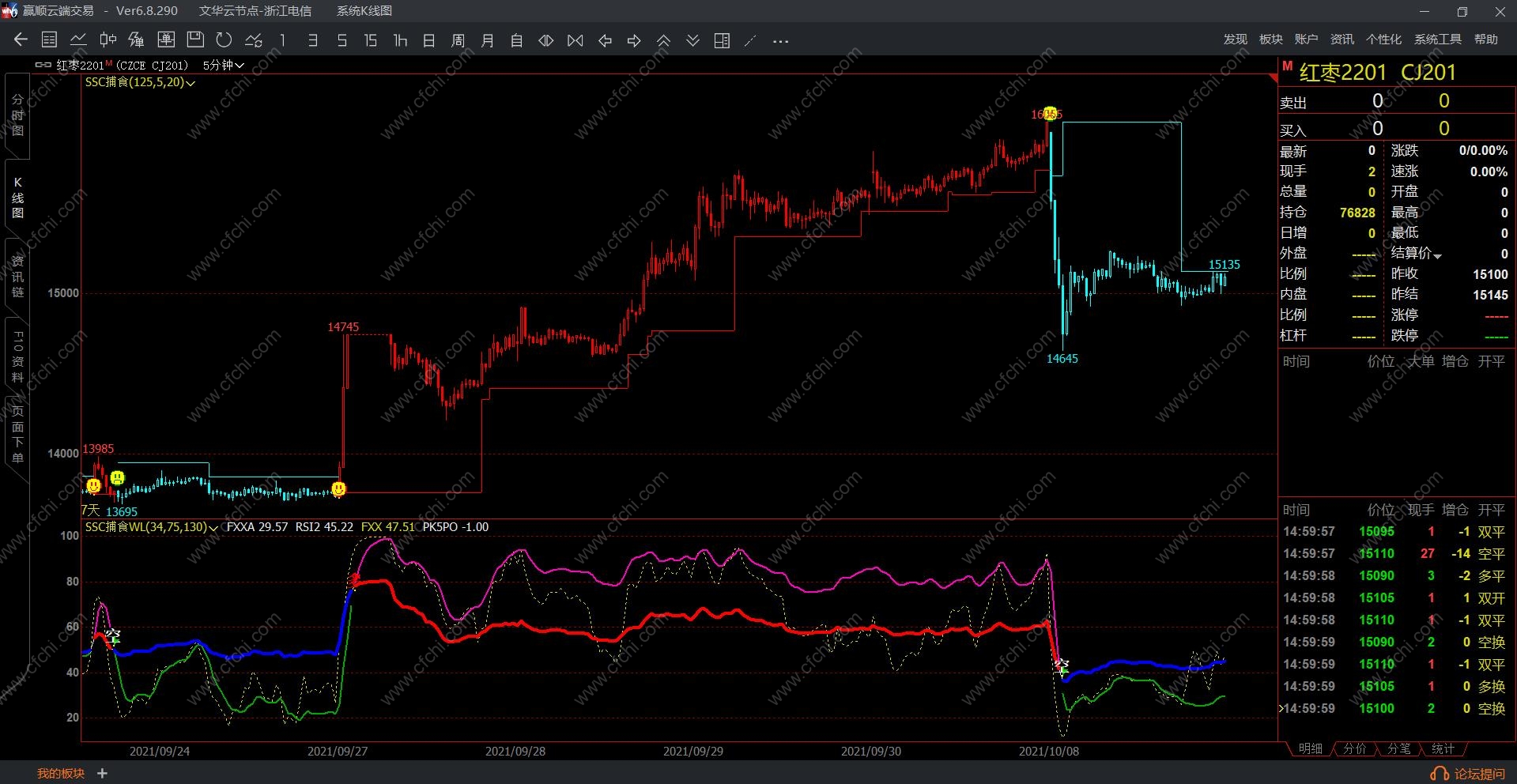 1、指标类型:现在使用级的指标基于文华财金软件有捕食(BS)、WL(WL)两个量化指标。捕食图形有红K蓝K线、移动止损止盈线(平仓线)、多空信号点。WL指标有仓量线、短期线、方向交叉点。两种指标可以用于5分钟、15分钟吗?可以的。我们量化指标适合期货各种周期及各种品种(包括股票和各种投资类)。