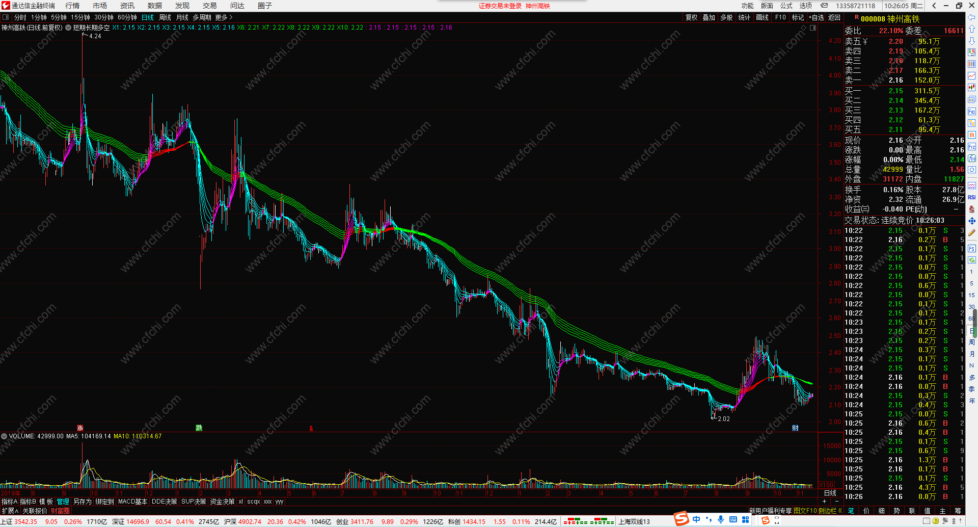 当多根趋势线同时处于绿色时候代表长期趋势处于空头趋势.