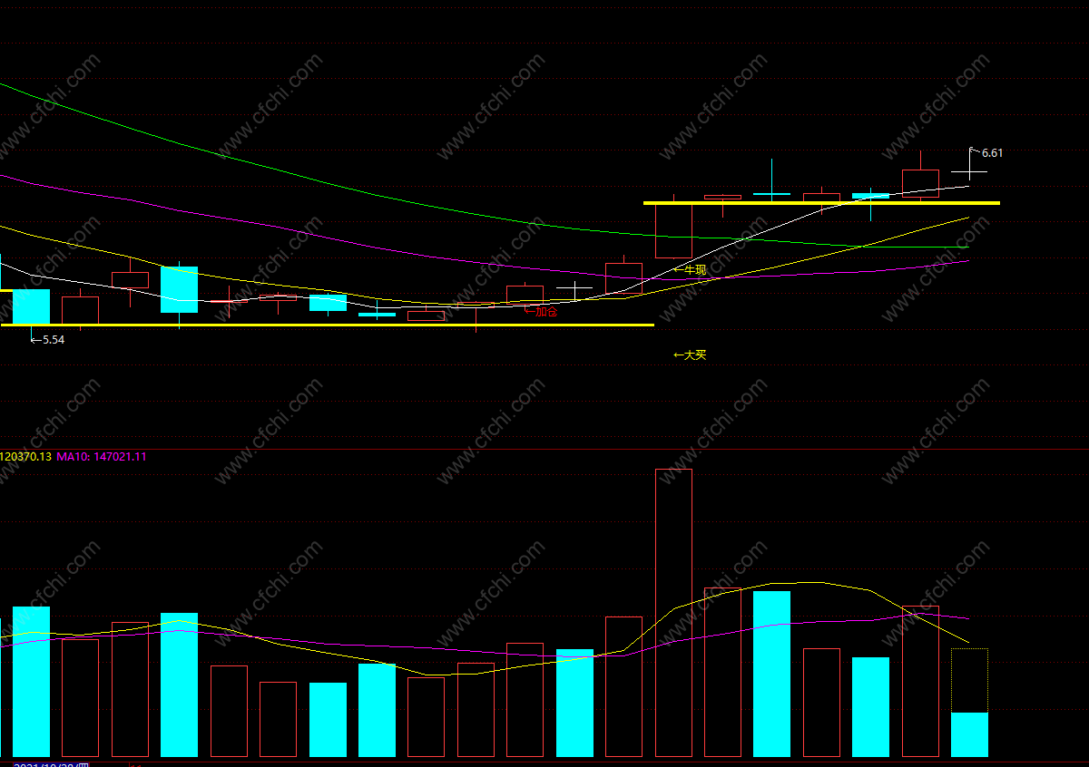强势狙击:=FILTER(BB30>40 AND BB10>40 AND CROSS(BB05,50),10);