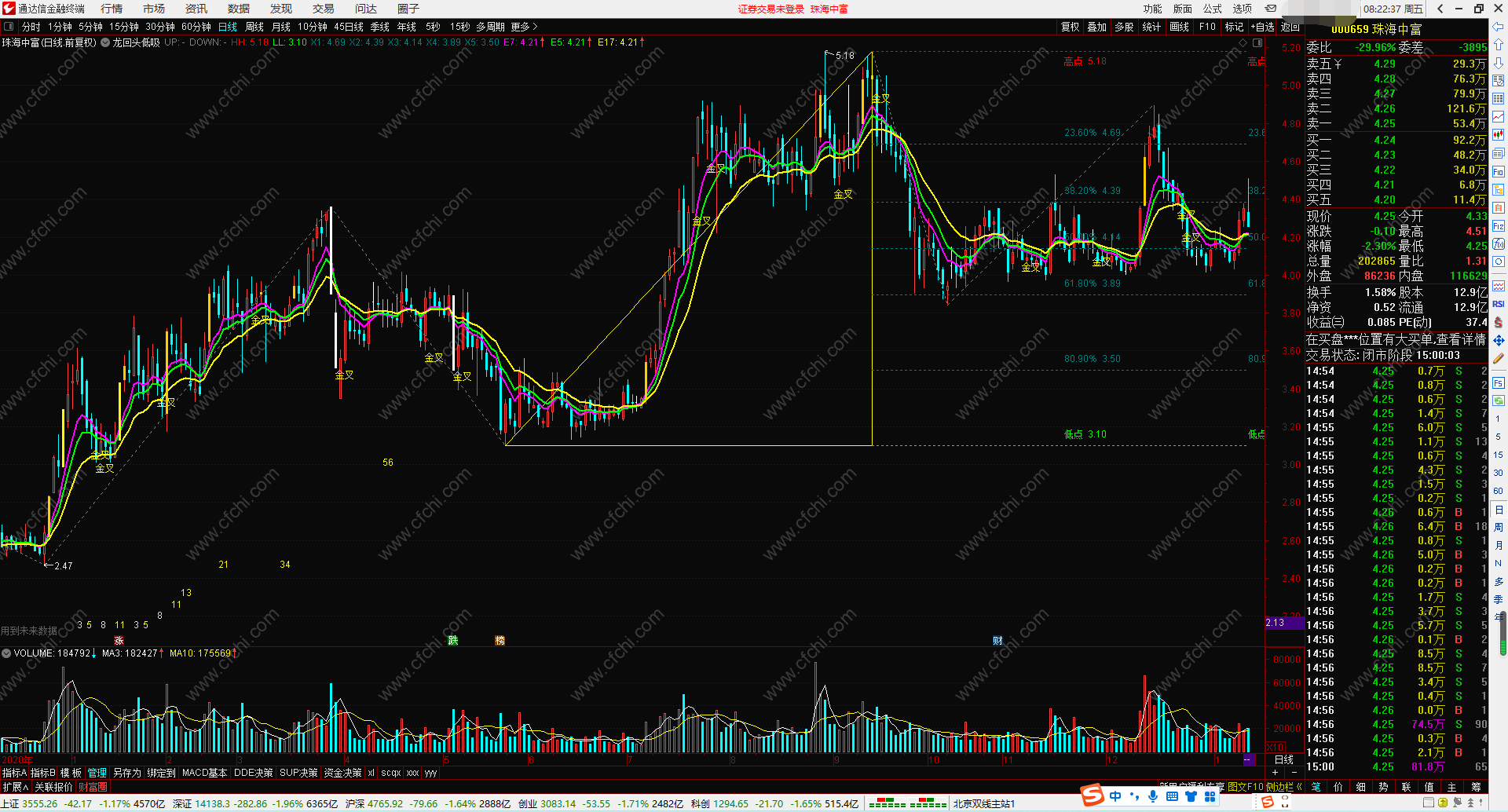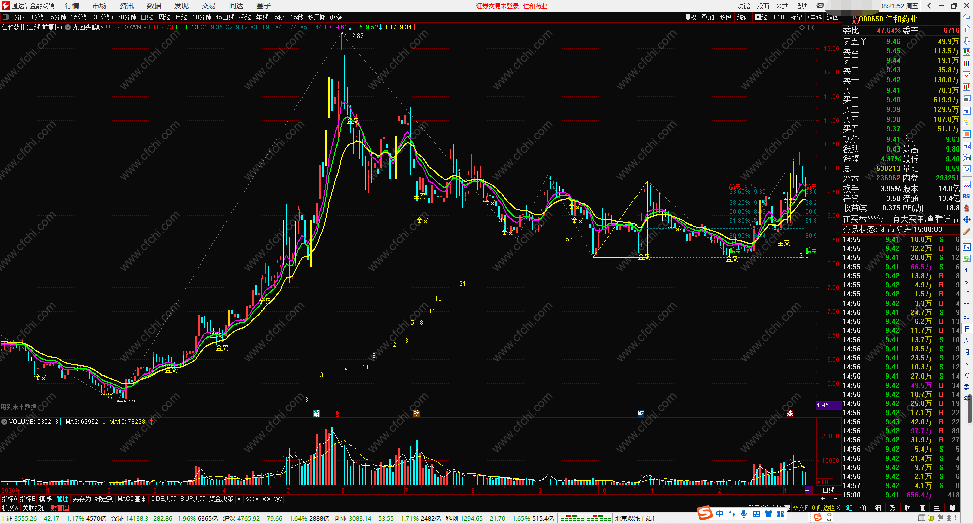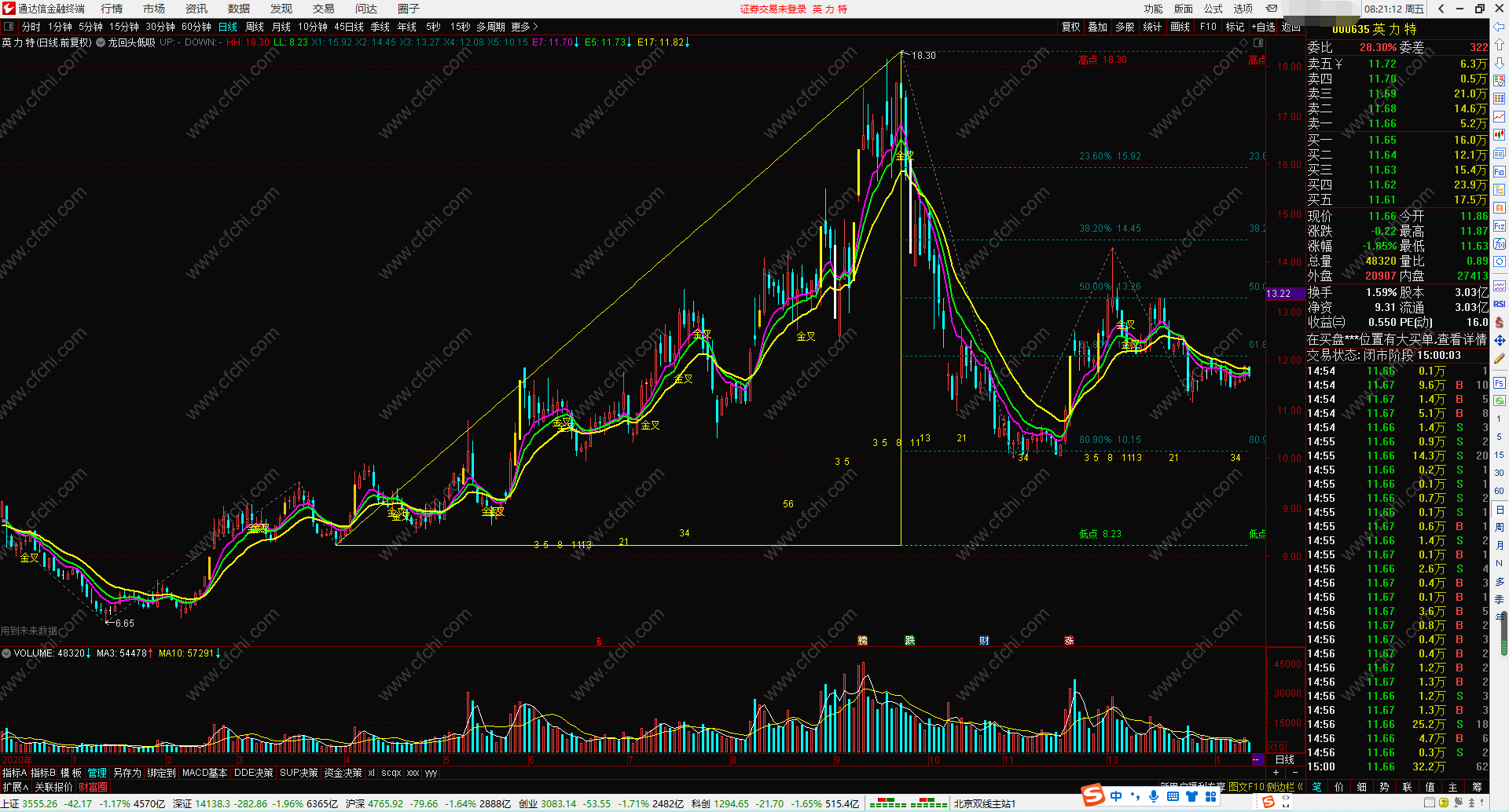 (龙回头低吸 菲波纳奇数例 时间窗口 黄金分割 主图 无加密 无引用dll )