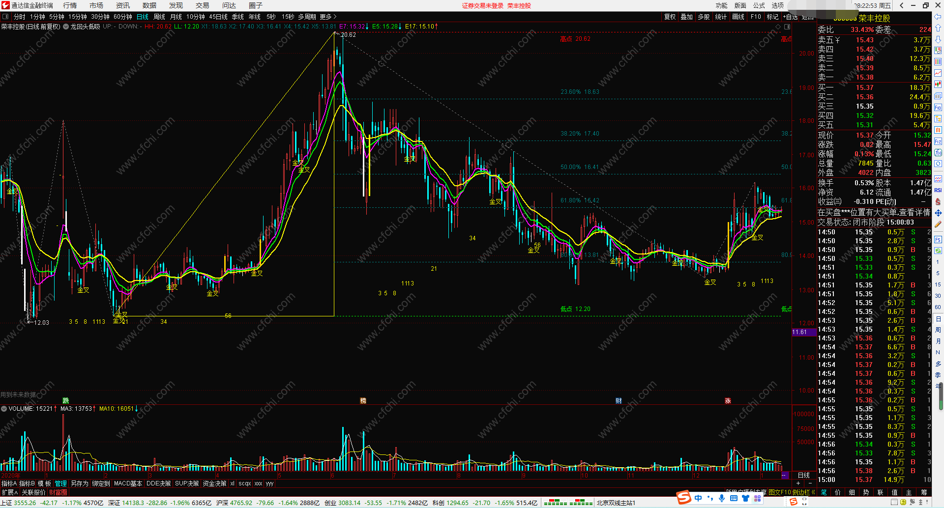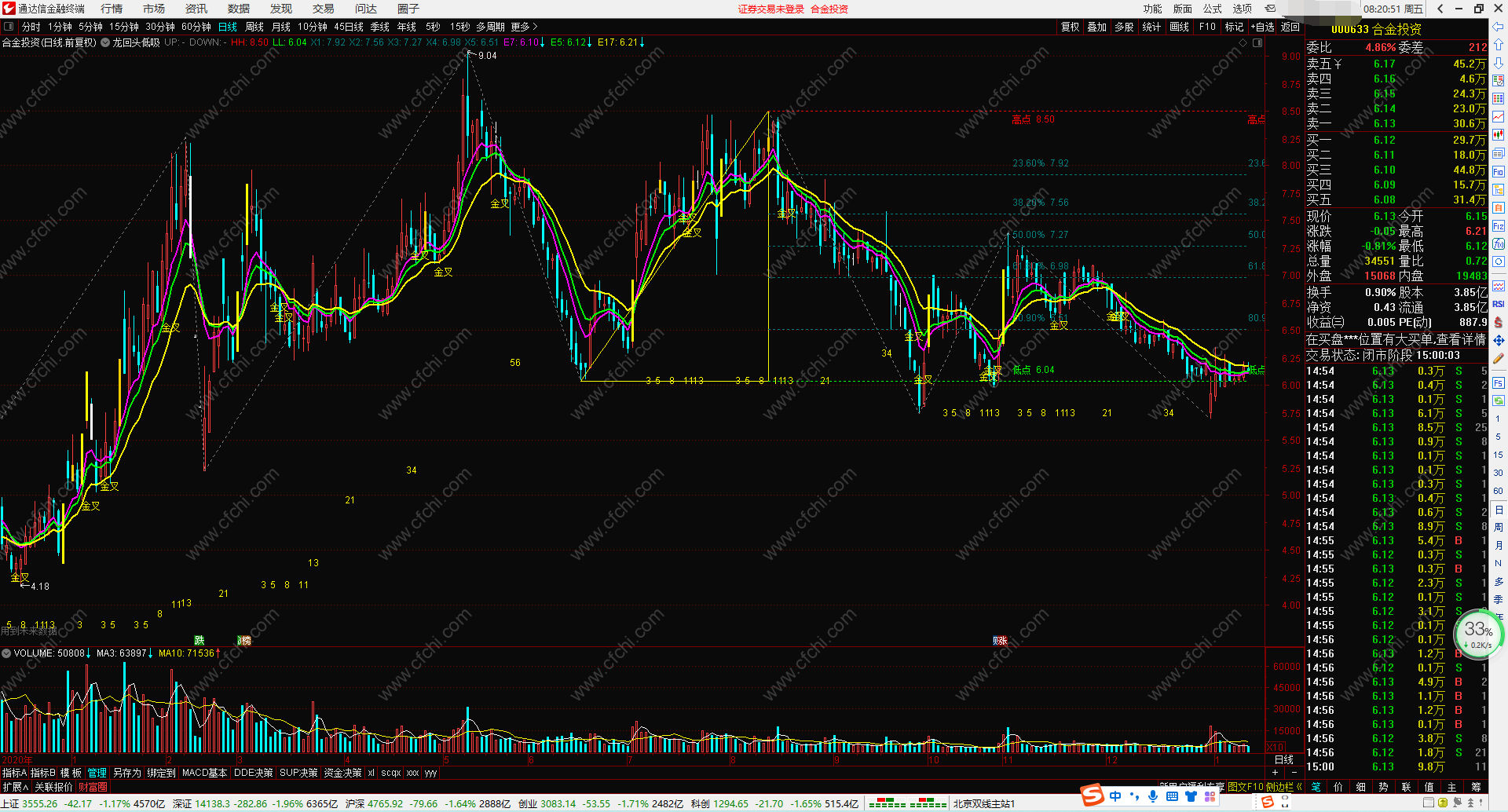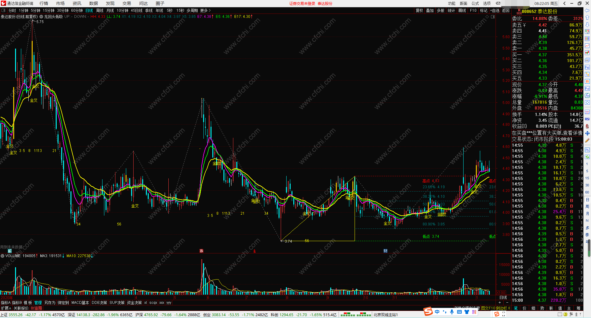 (龙回头低吸 菲波纳奇数例 时间窗口 黄金分割 主图 无加密 无引用dll )
