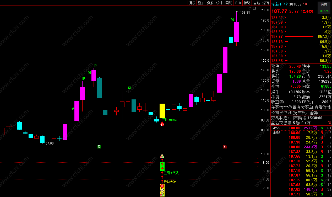 郑重声明:股市具有不确定性,个股走势是无法预测的。公式软件描述中的案例截图仅代表过去,仅供参考学习研究之用,不构成投资建议或未来保证,也并不能代表未来,依此操作,责任自负。股市有风险,入市需谨慎。
