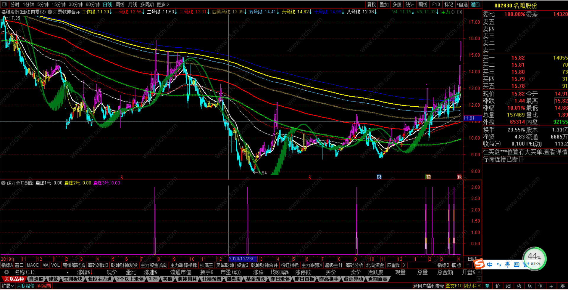 绿色线为主力建仓成本均线,经过反复验证,较为准确;