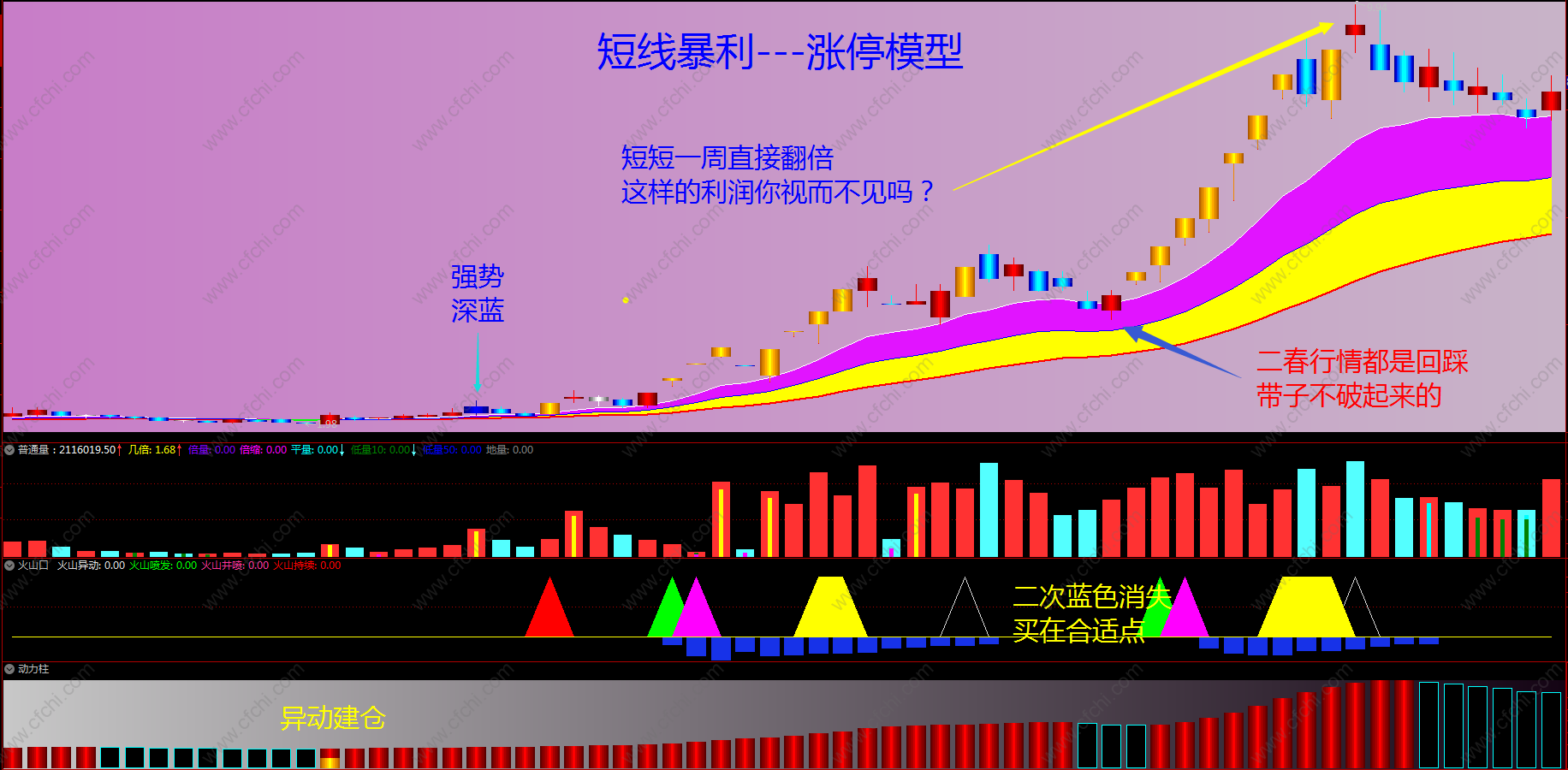 (7--股市快速赚钱机器之短线暴利涨停板模型主升浪牛股起爆---矿山寻宝盈利系统指标公式)