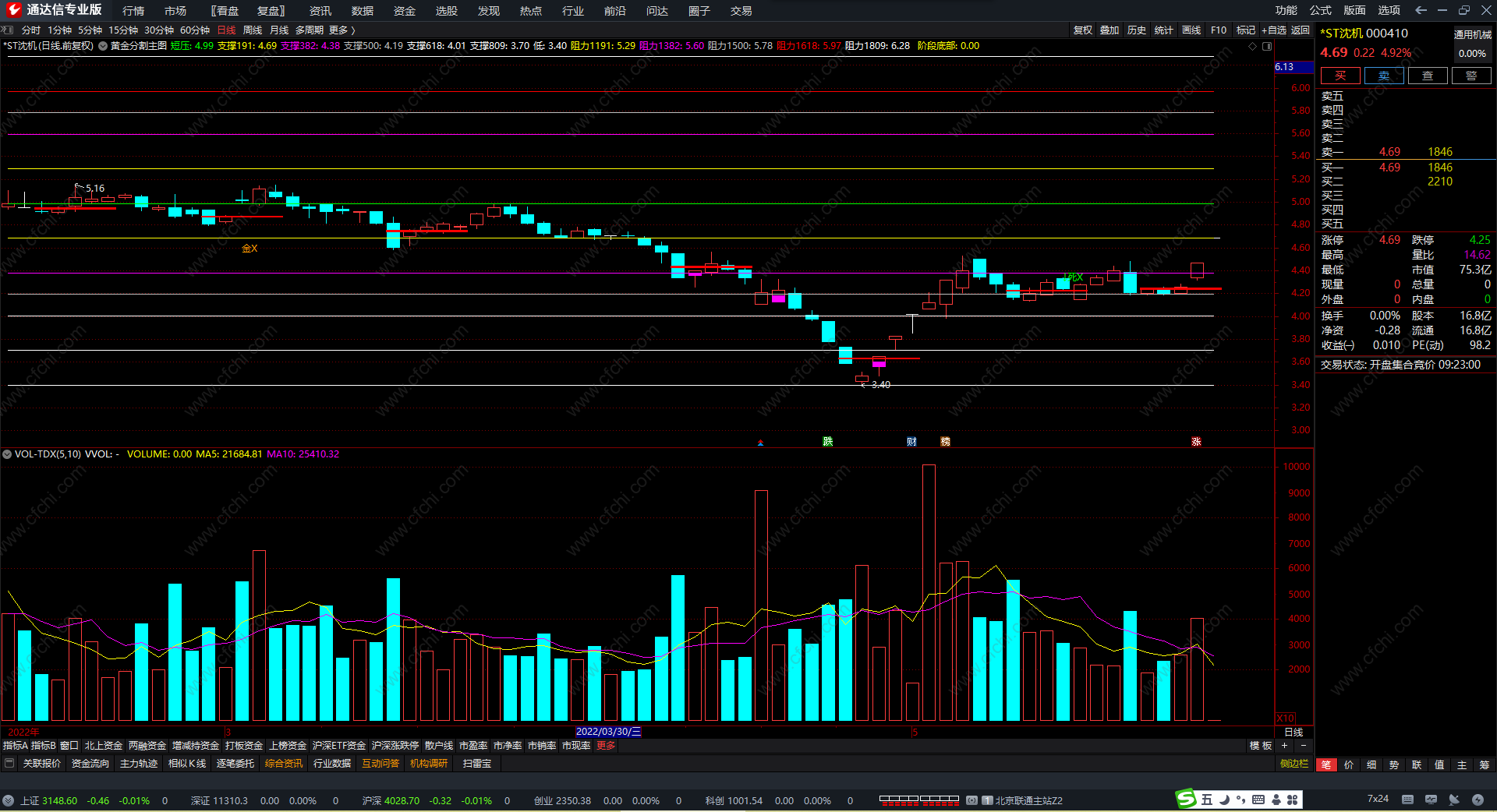 (通达信黄金分割主图 黄金趋势分割指标公式 源码)