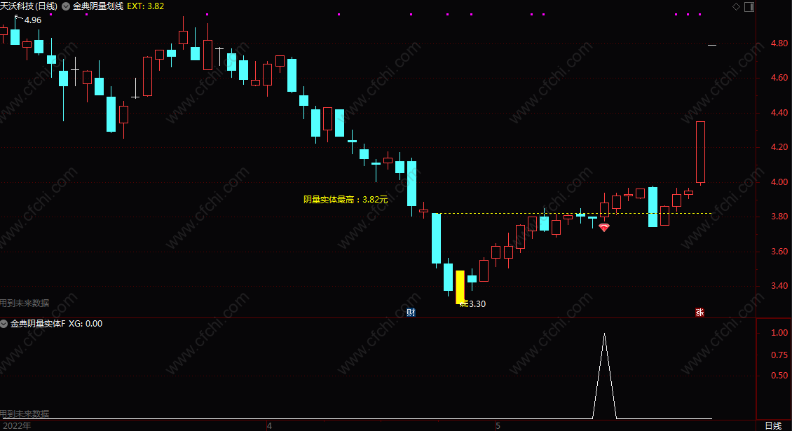 (金典突破阴量实体主图画线 选股 预警 源码)