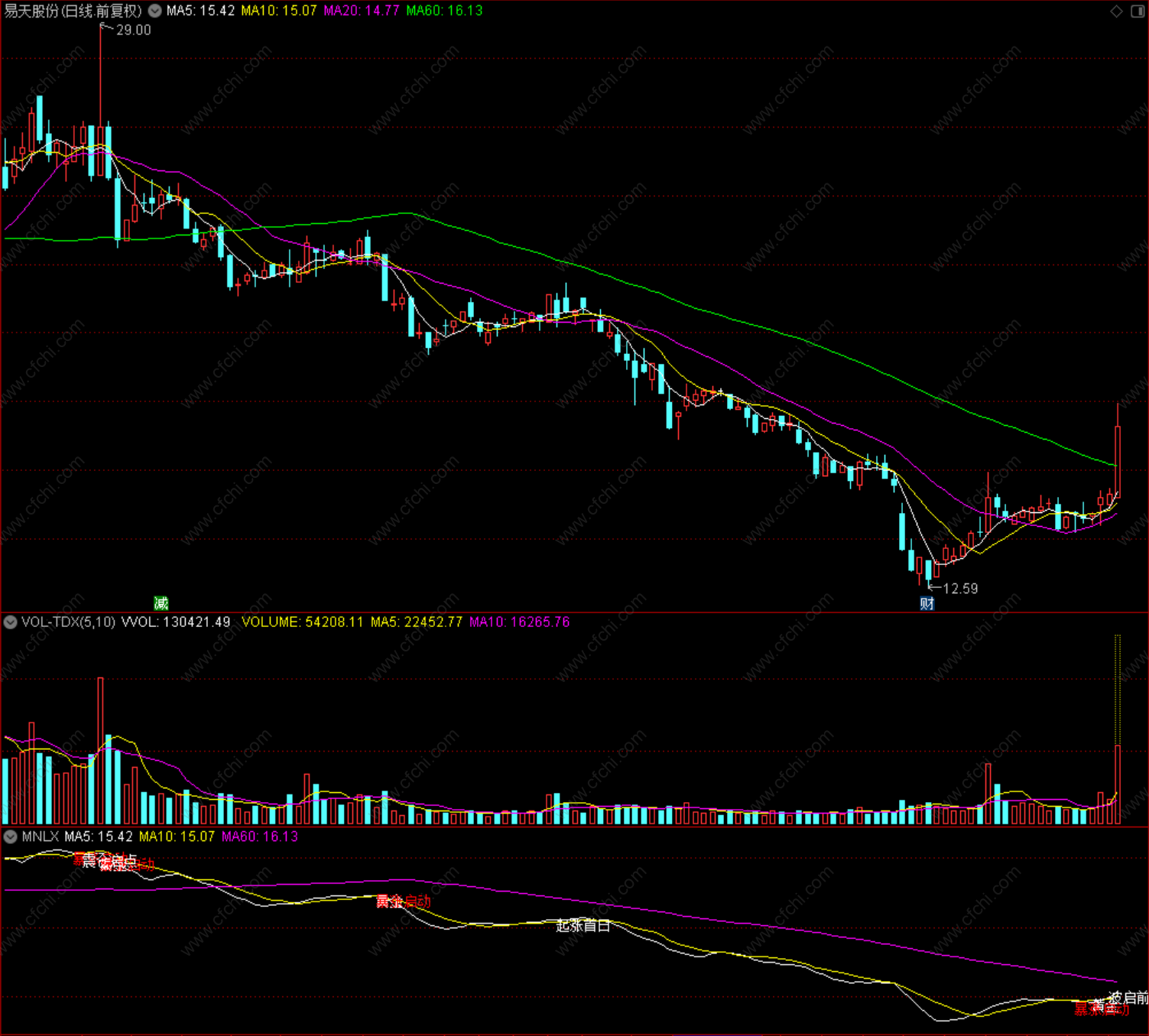 DRAWTEXT(AW AND BW AND EW AND FW AND TXW,L-0.03,'起涨首日');