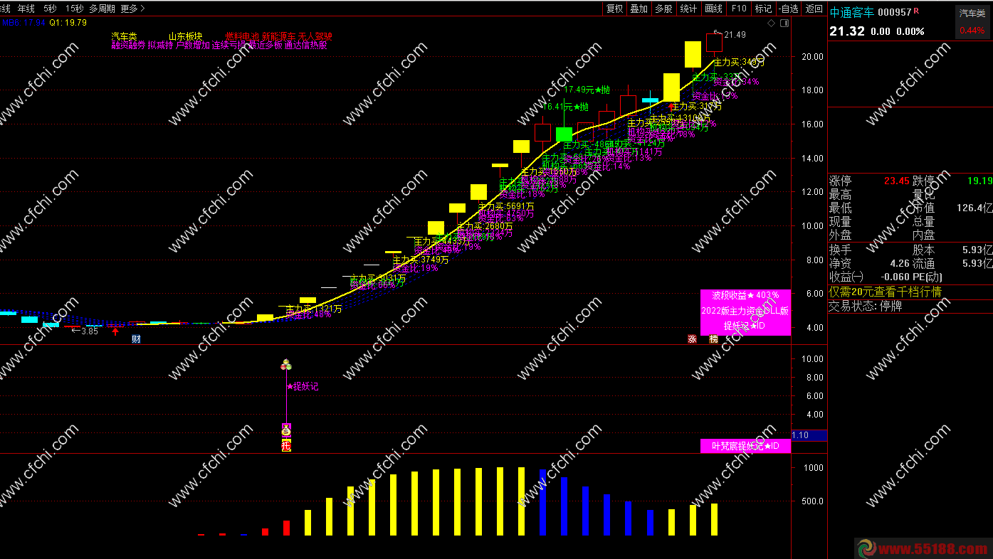 封板资金:盘中个股涨停 自动计算 展示至 主图K线中