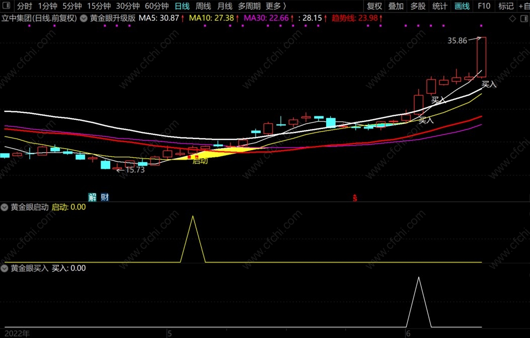 2、加入了启动标识,配合黄金眼使用上涨的确定性更高;