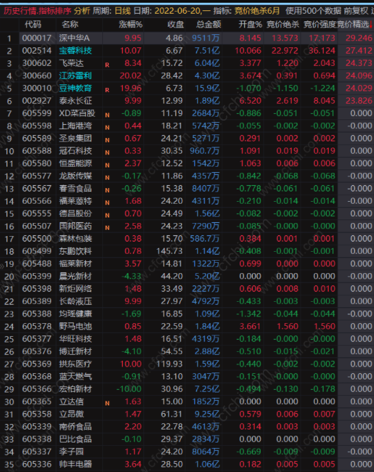 个股竞价量能需要达到前一个交易日的 4%-20%才算符合预期,具体多少见下面细分