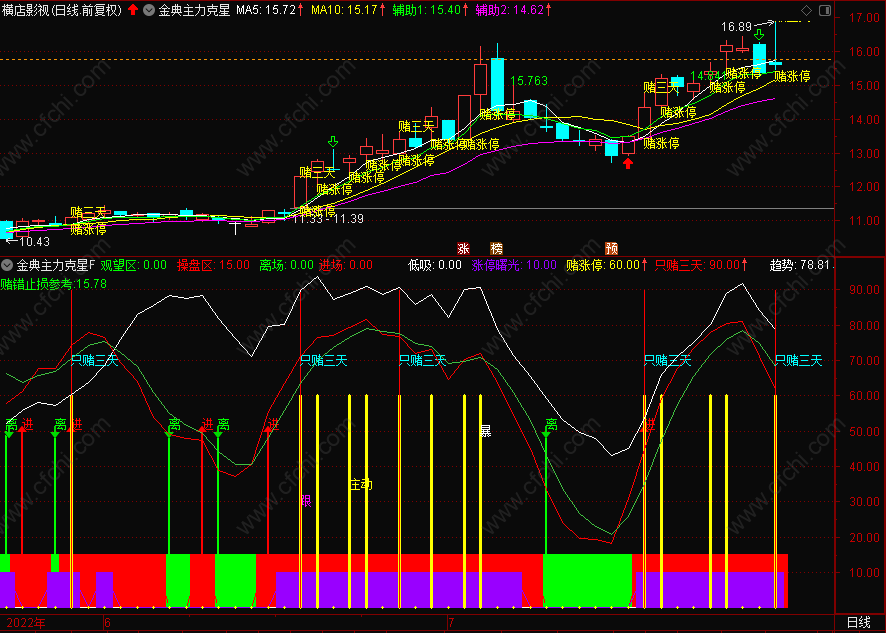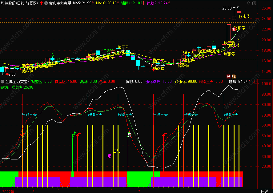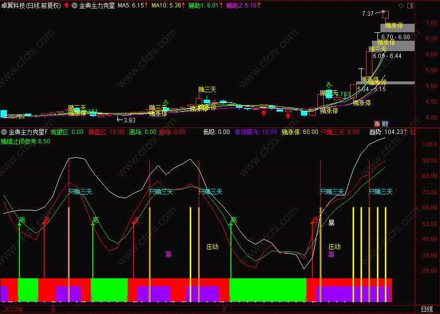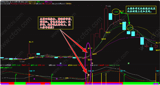 紫色区域高但不代表一定必须有涨停所以叫曙光。还有红箭头和绿箭头进离场信号提示。等等!!