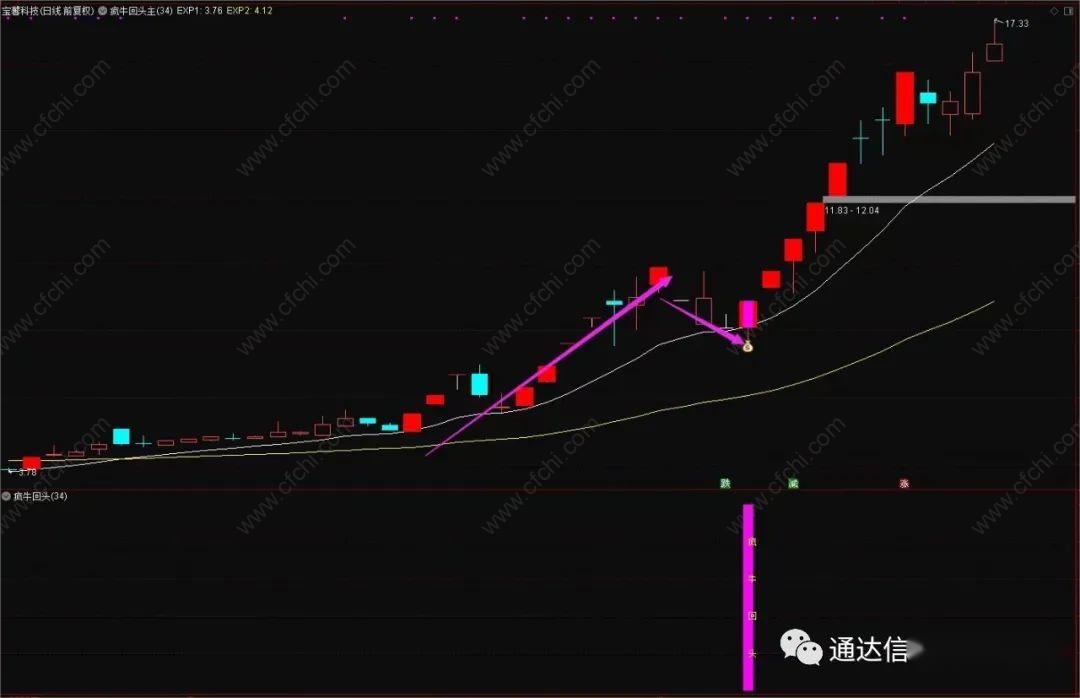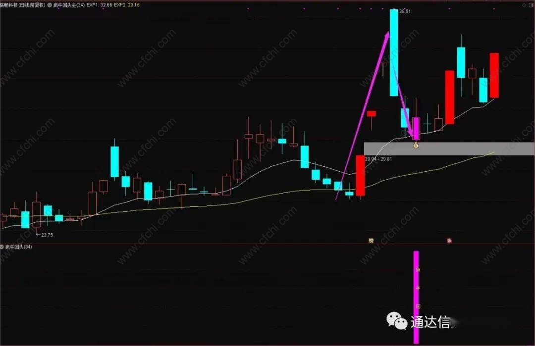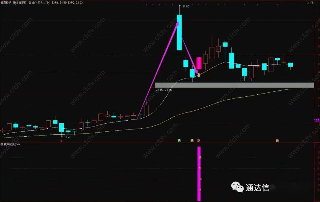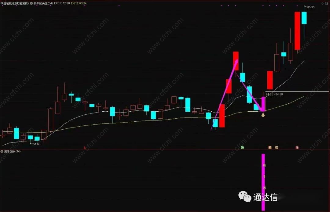 【疯牛回头】专做强势股拉升后回调 安全可靠不用追高 主副图/选股公式 源码分享 附图