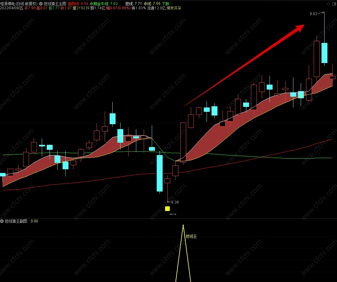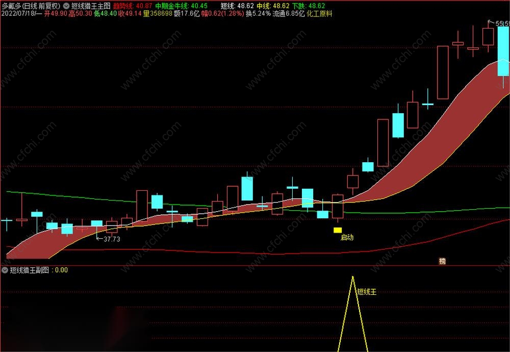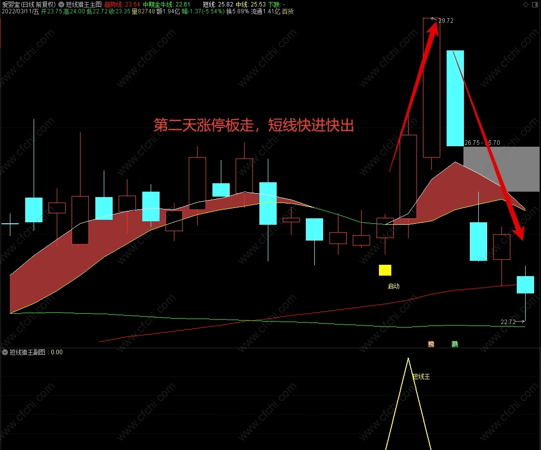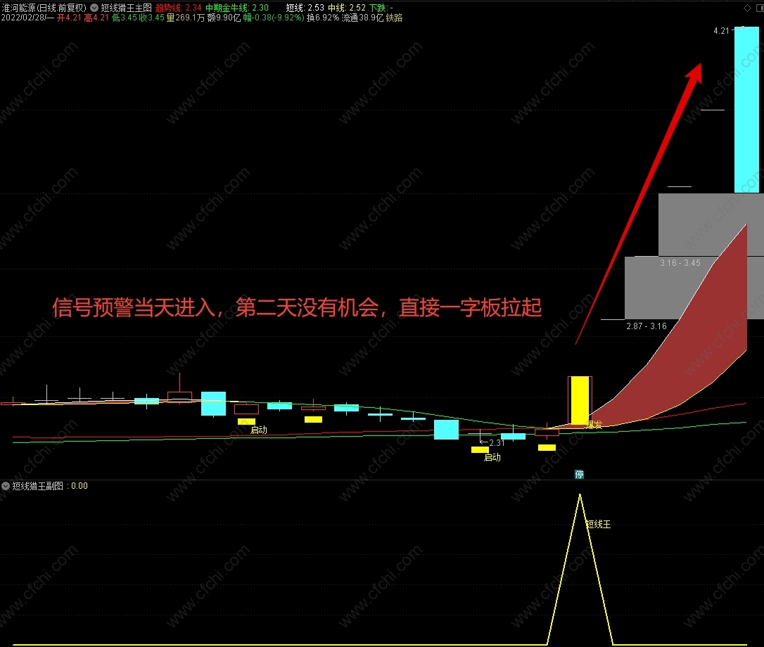 3、本指标盘中预警或盘中介入即可,大部分出信号当天就能涨停或大涨,玩超短的次日高开或冲高止盈就可以;做波段的可根据本指标“短线王主图”指标持股操作即可。