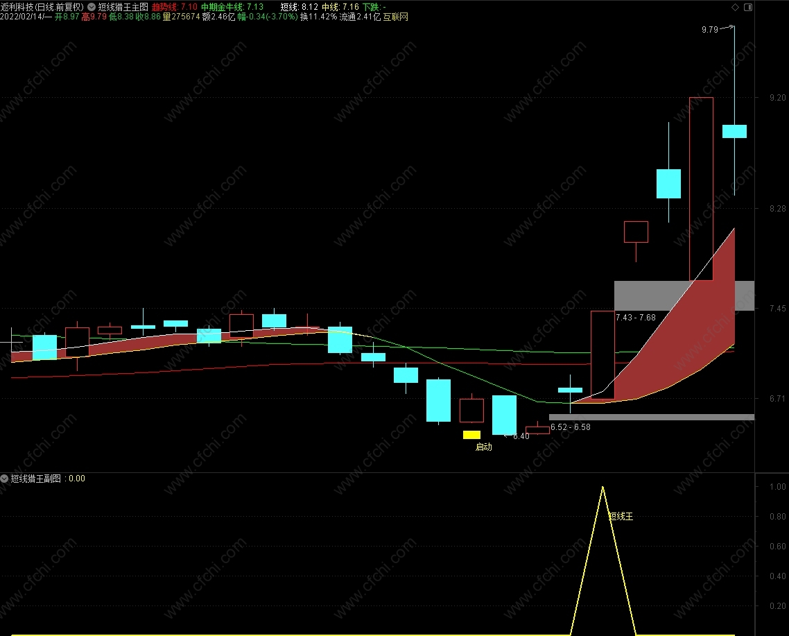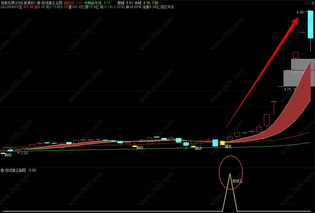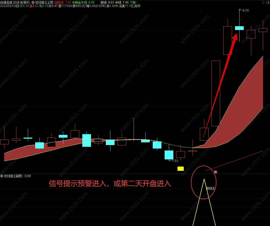 3、本指标盘中预警或盘中介入即可,大部分出信号当天就能涨停或大涨,玩超短的次日高开或冲高止盈就可以;做波段的可根据本指标“短线王主图”指标持股操作即可。