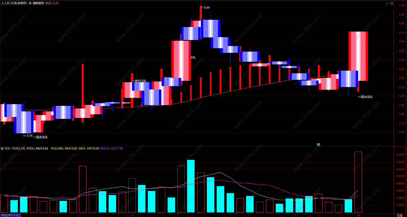 【财富池_量能分析】红粉黄绿四色绝版官方原创核心指,还原个股真实走势(量能判断)