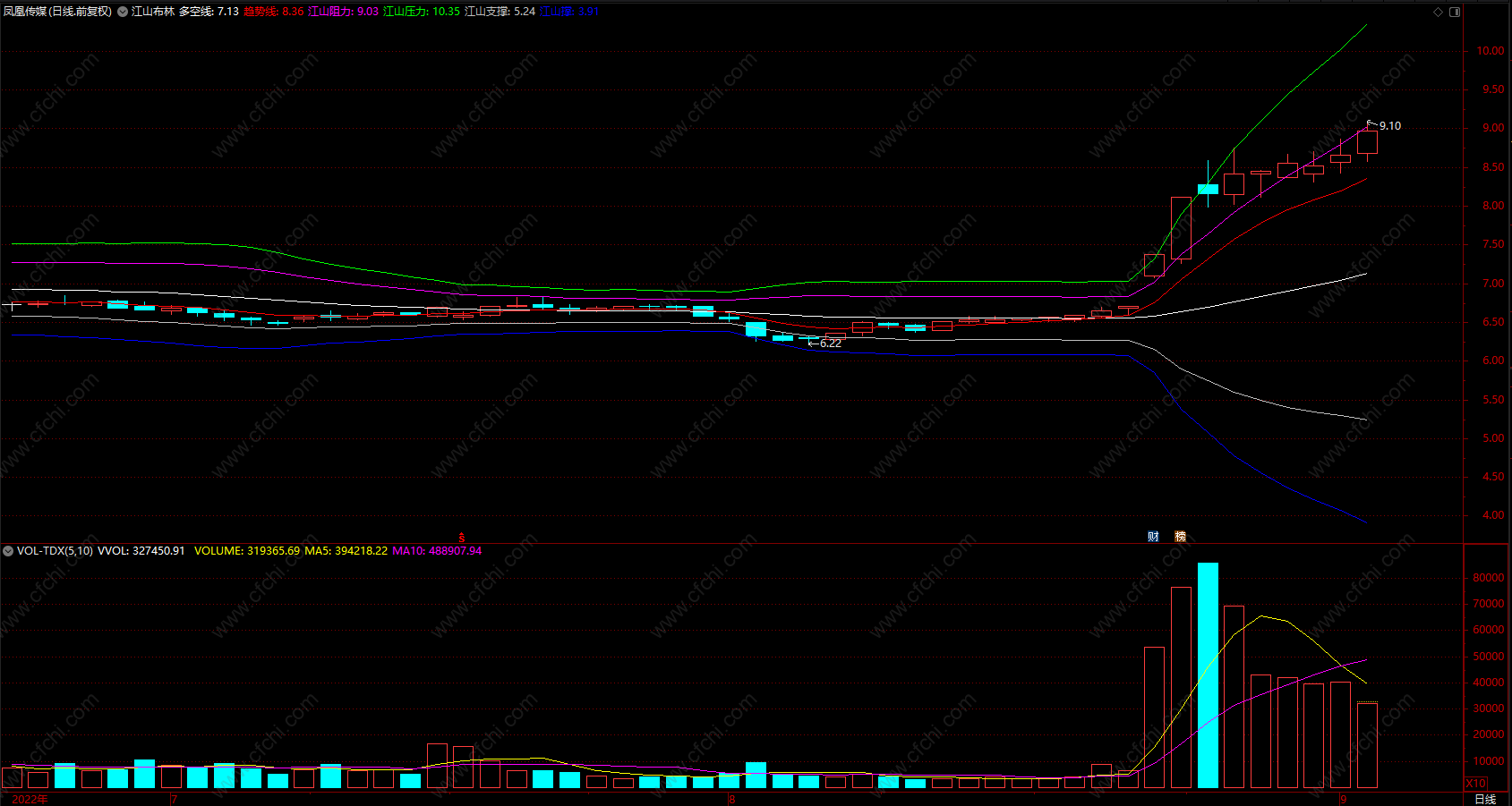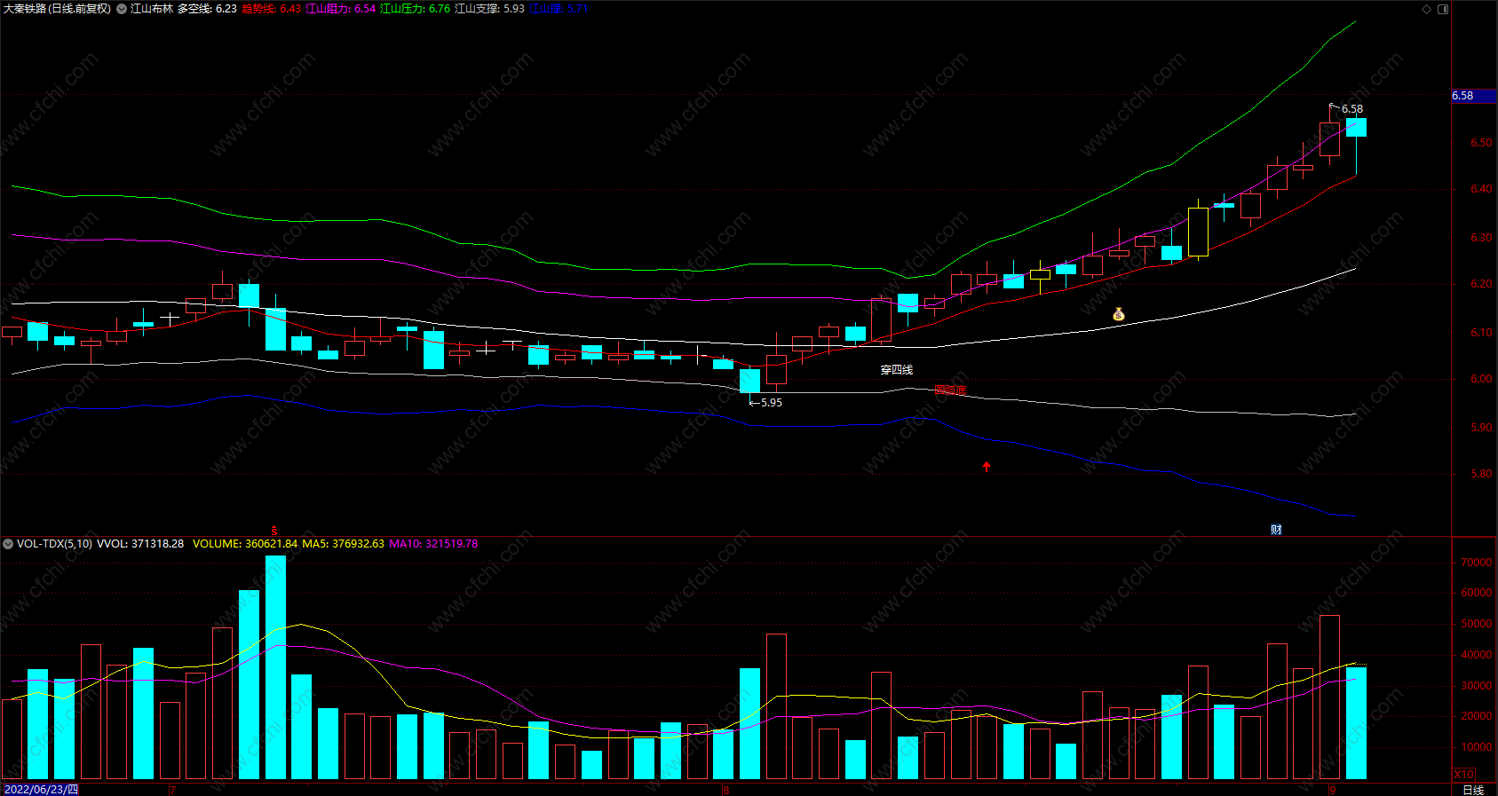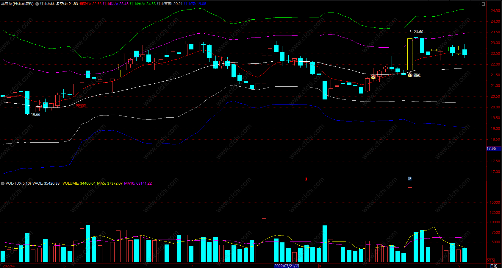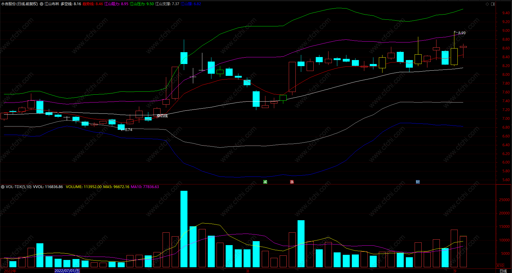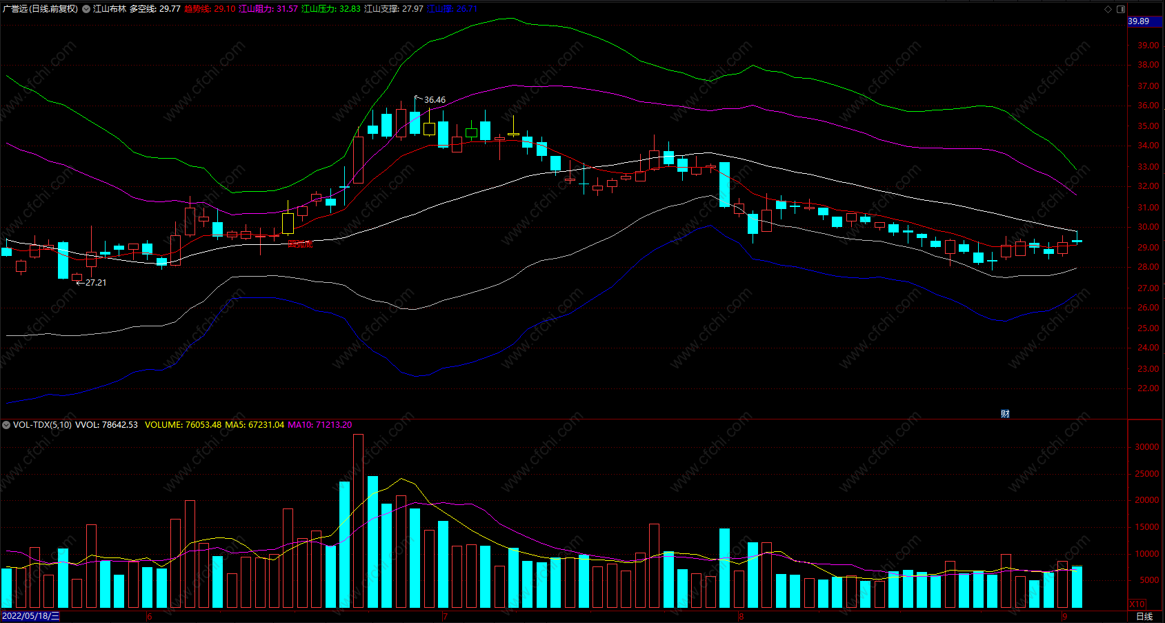 江山压力:多空线+1.7*2*STD(CLOSE,26);