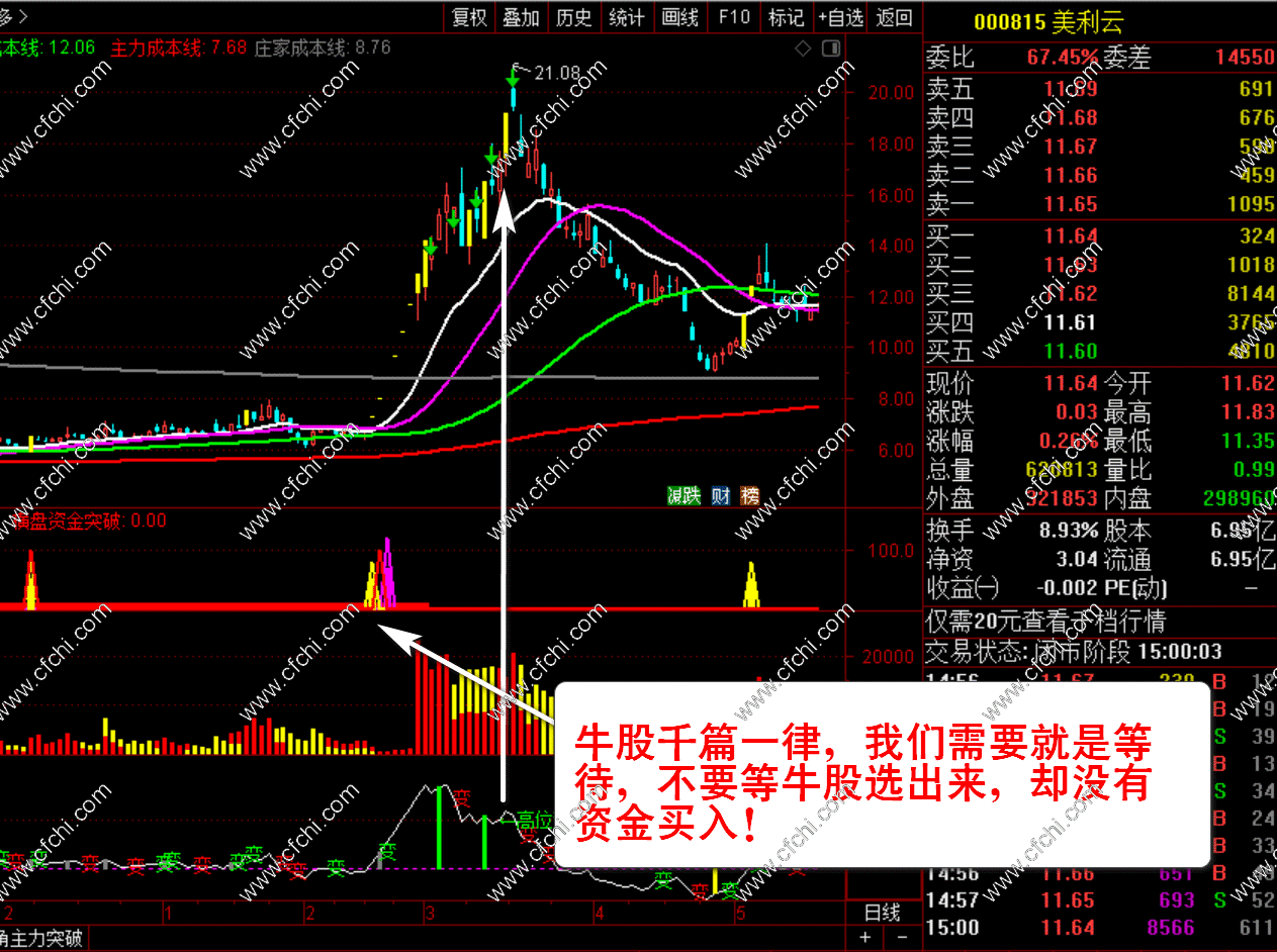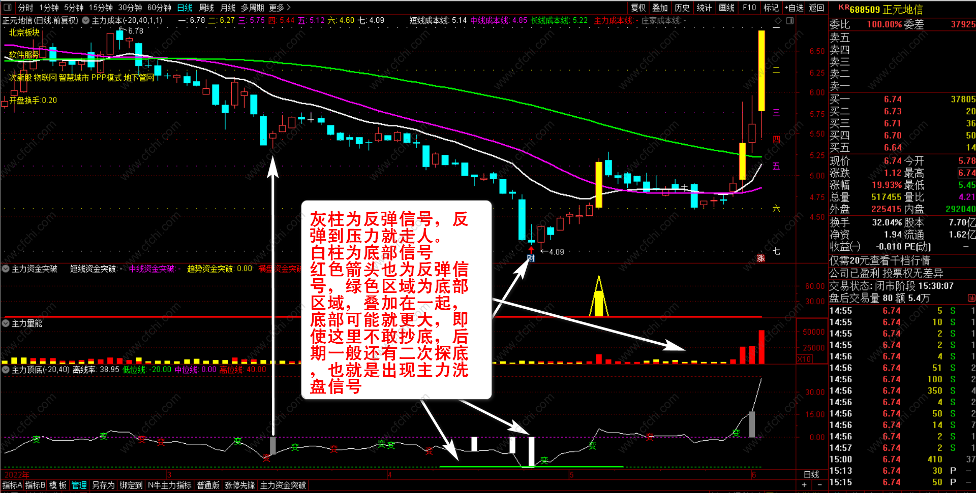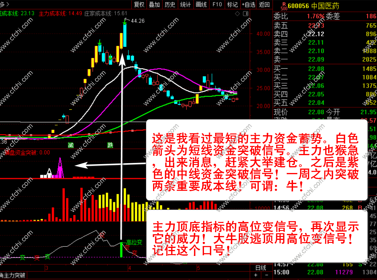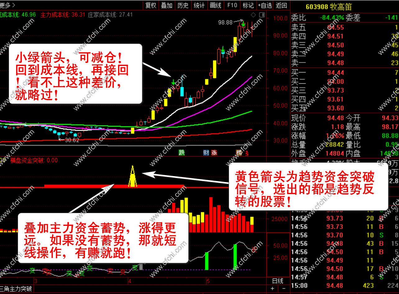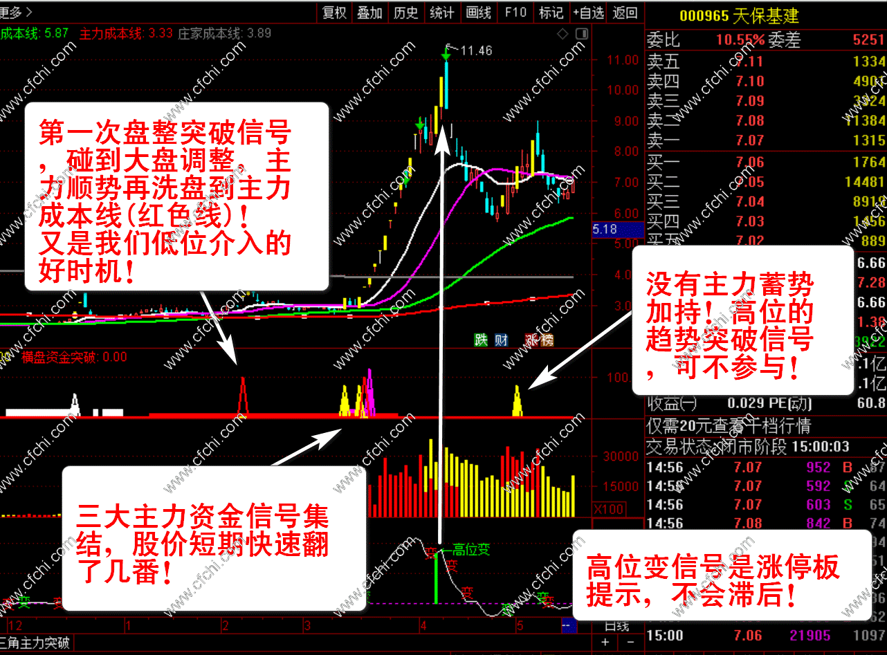2、【主力资金突破】+【主力量能】+【主力顶底】三个副图指标。