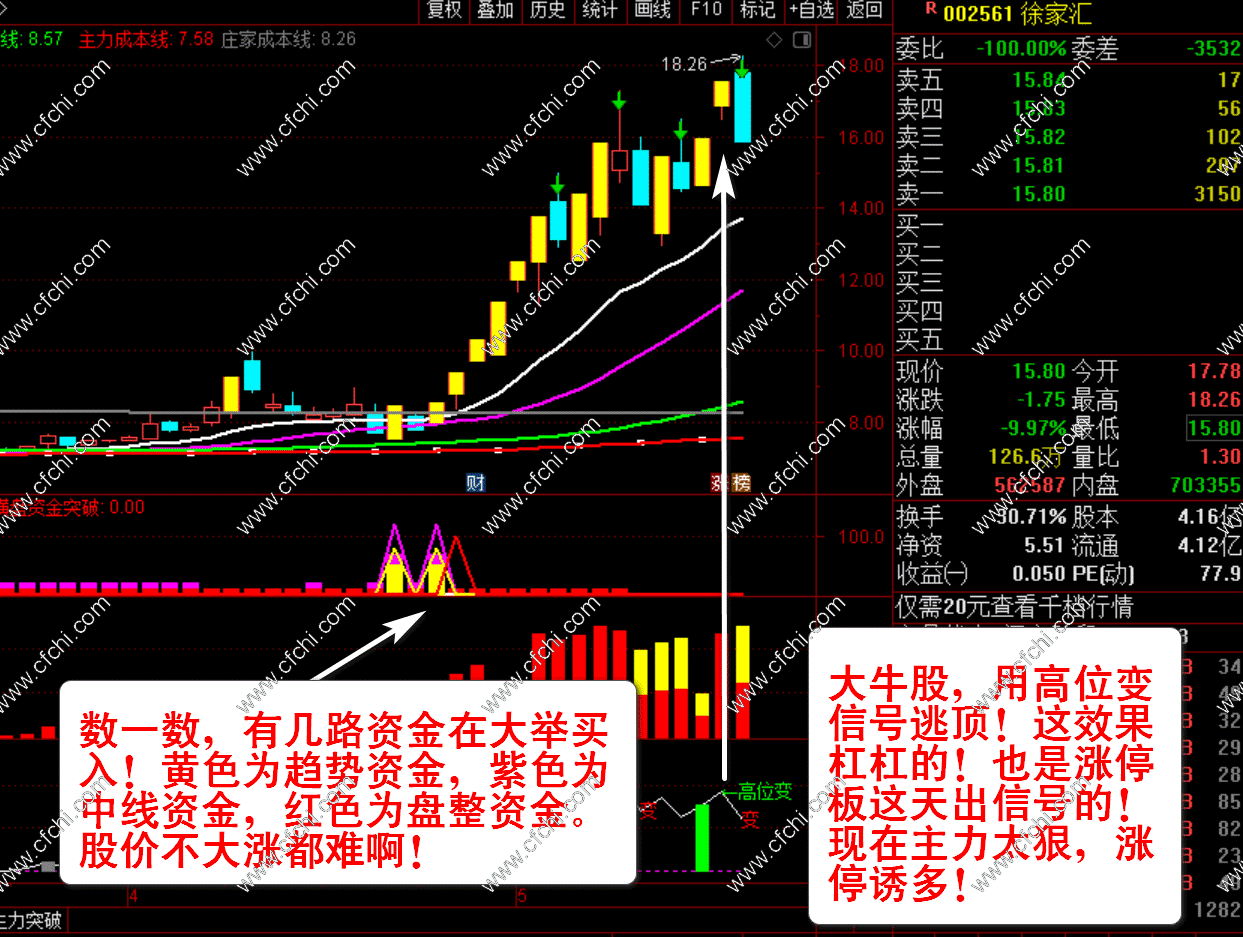 【财富池_量能分析】红粉黄绿四色绝版官方原创核心指,还原个股真实走势(量能判断)