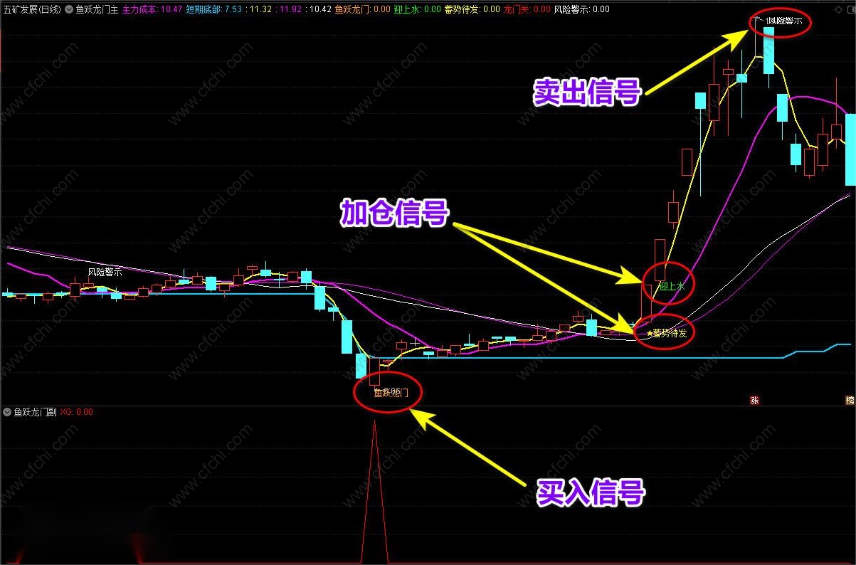 2、买入信号和卖出信号之间,有迎上水、蓄势待发和龙门关几个操作信号,如果用户有中间加仓的习惯,用迎上水、蓄势待发作为加仓。
