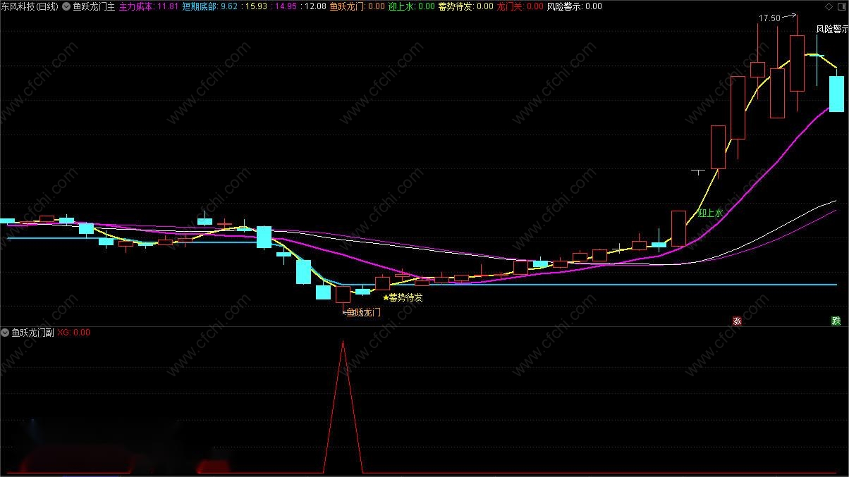 1、鱼跃龙门和风险警示,前者是买入信号,后者是卖出信号。