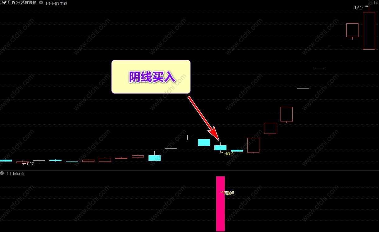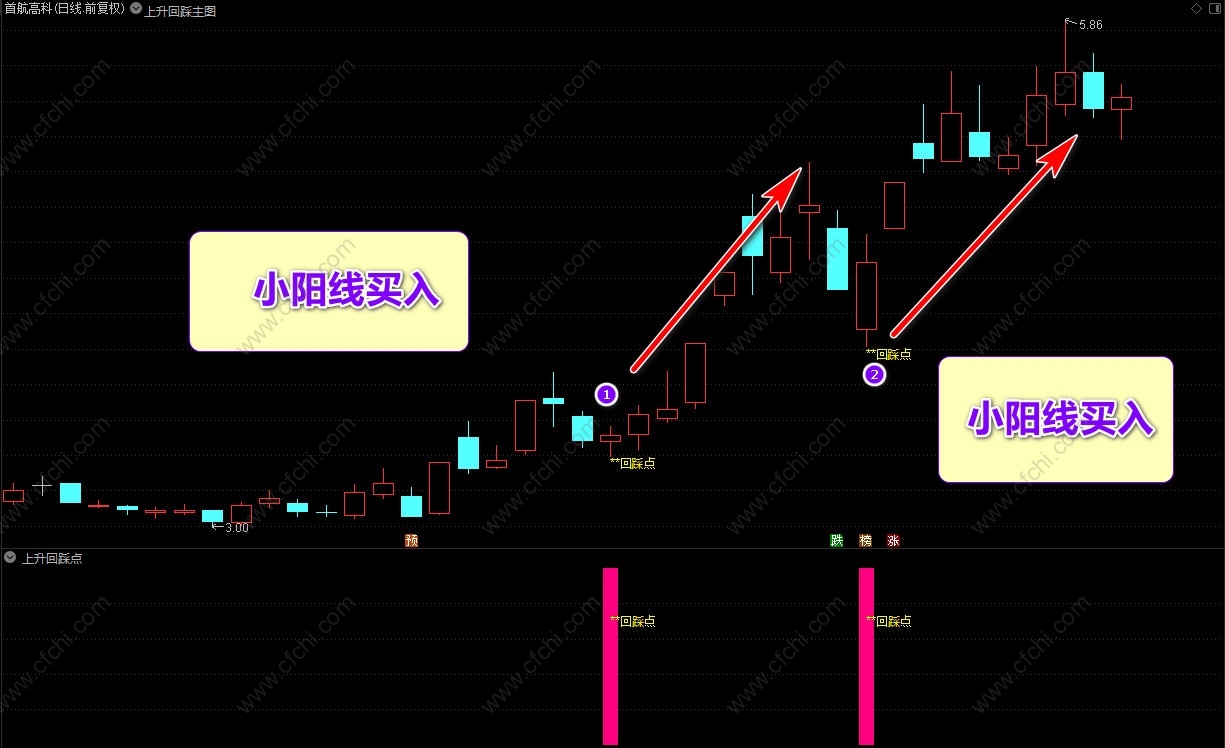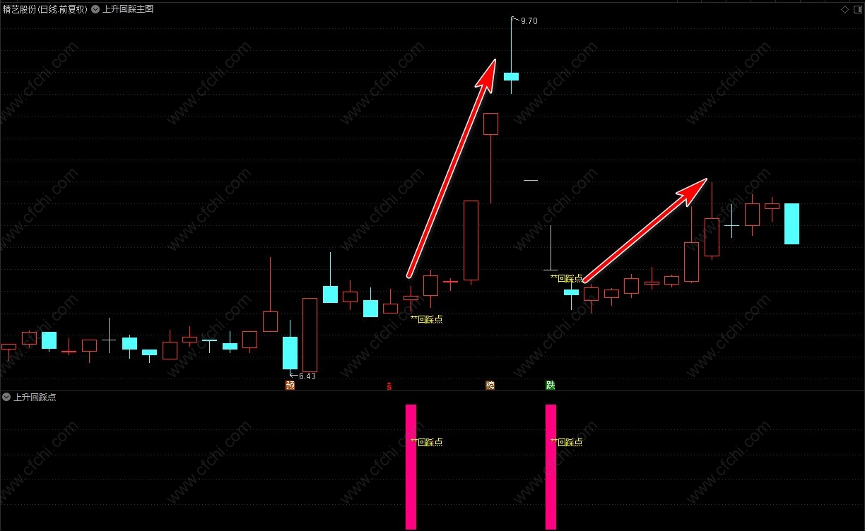 (通达信《上升回踩点》 主图 /副图 /选股预警 /无未来 , 阴阳双线发出信号抓牛股!)