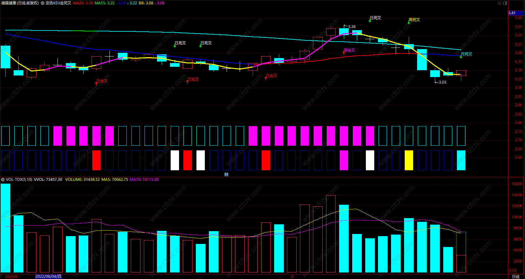 变色KDJ金死叉 通达信经典买卖点提示公式 主图 源码