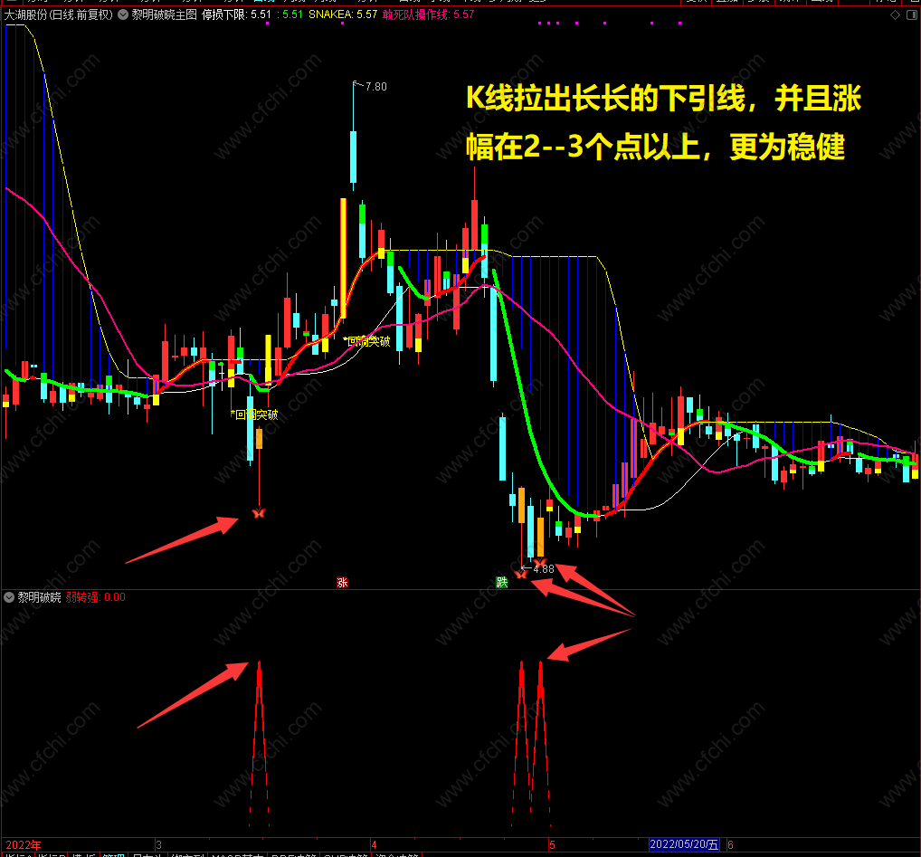 1、该指标为实盘指标,一般连续下跌后,主图蝴蝶信号出现(并且K线拉出长长的下引线,涨幅在2--3个点以上)为介入点位。