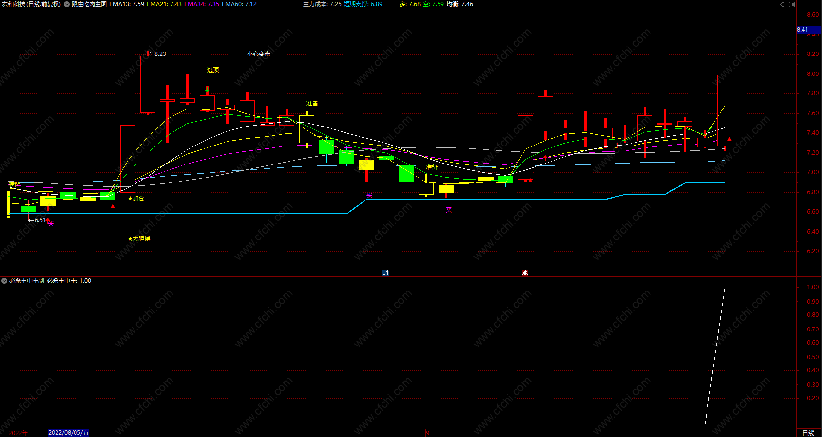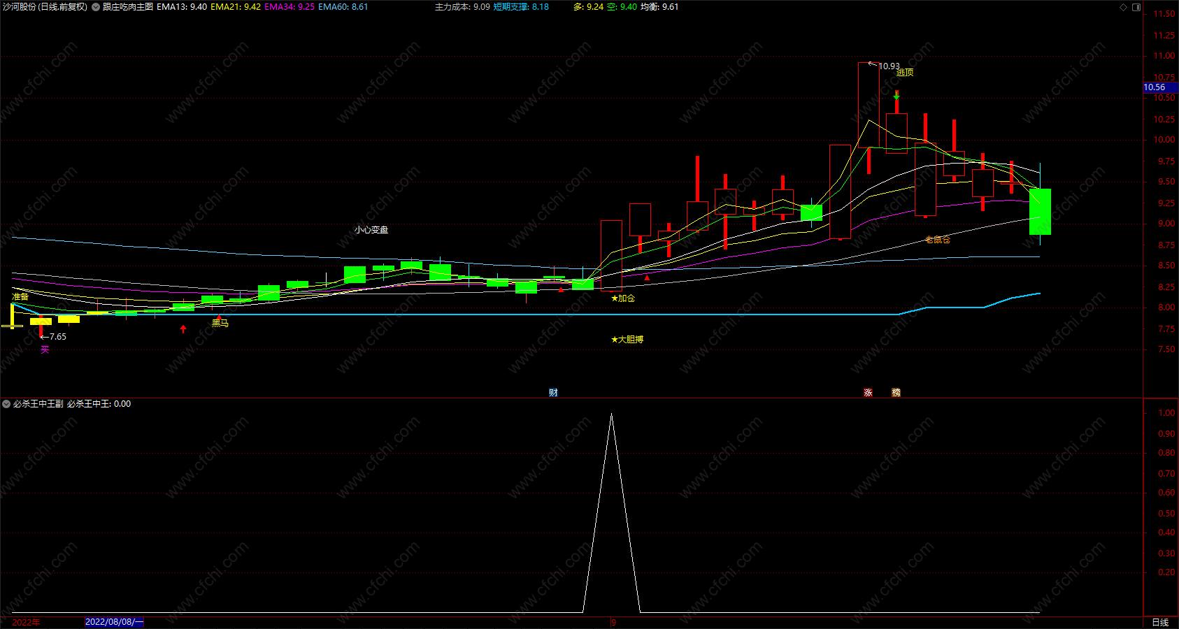 跟庄吃肉主图指标有明确的提示进出点,必杀王中王可做副图可以预警可以选股(信号不多但很实用),结合使用,成功率非常好!