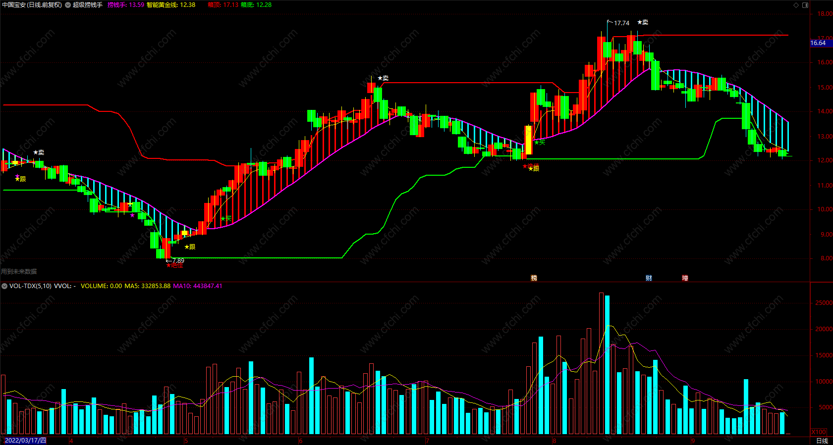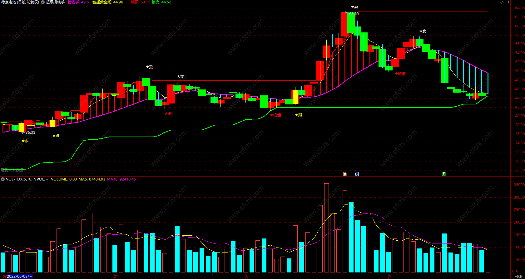 DRAWTEXT(A<B ,箱底,'--短期坏'),COLORF0F000;}