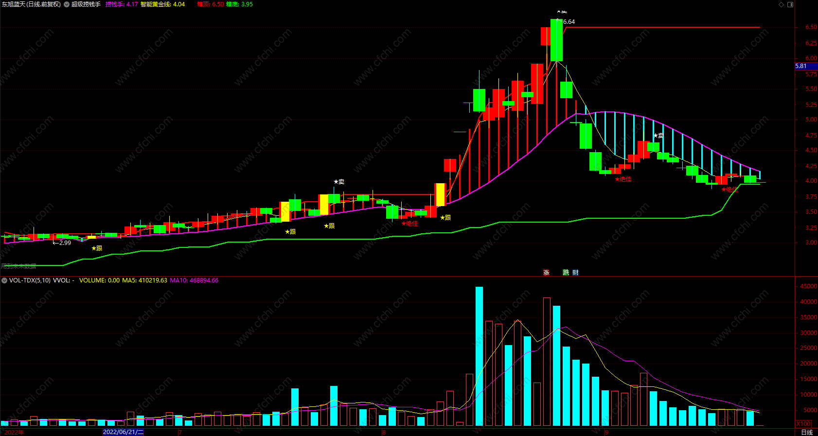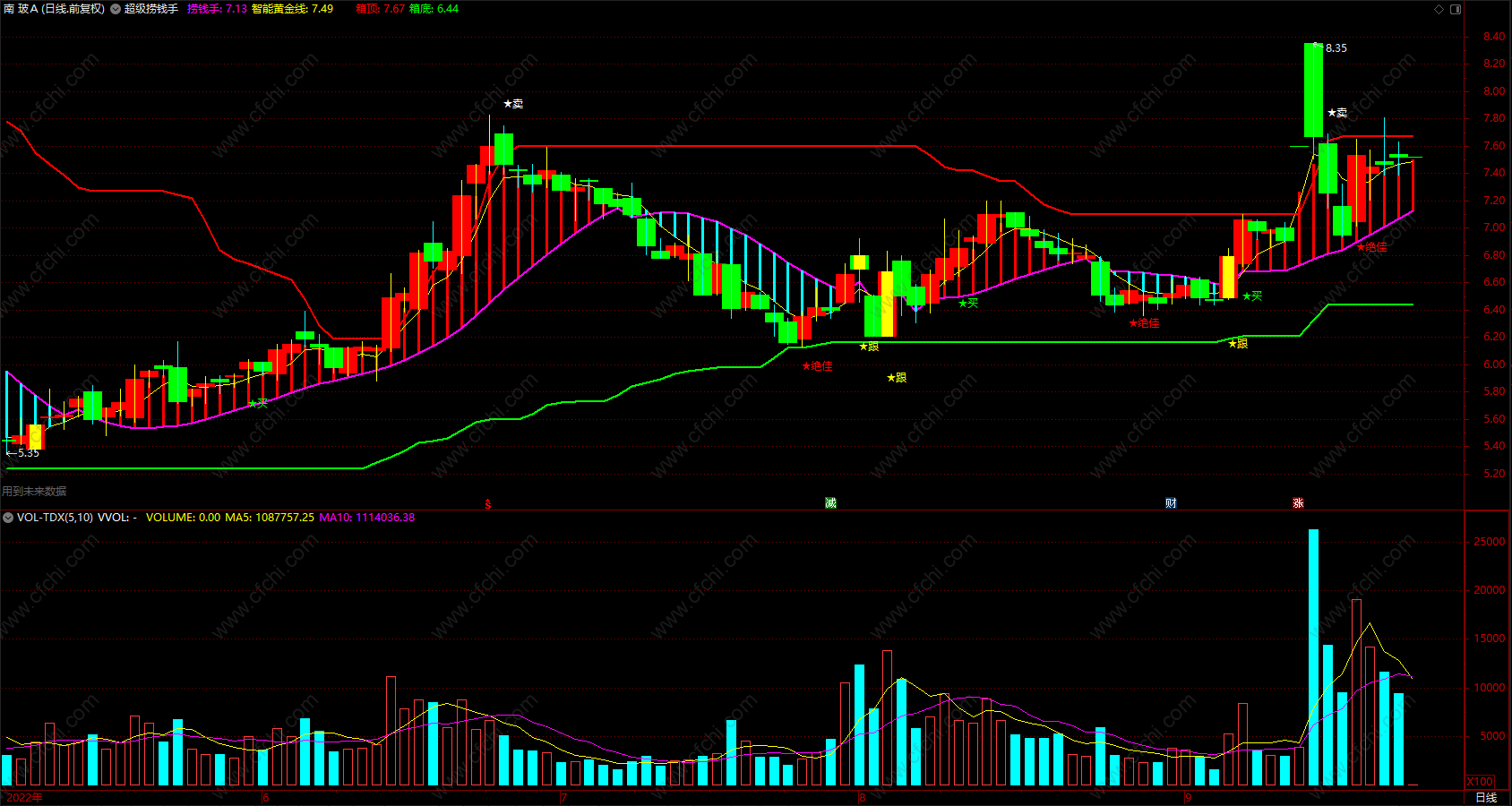 DRAWTEXT(A>B ,箱底,'--短期好'),COLOR00FFFF;
