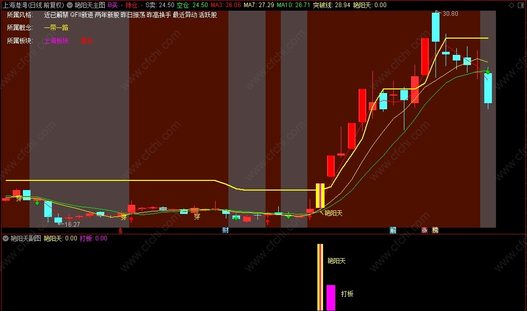 信号说明:黄柱:代表直升机信号 紫柱:代表打板信号