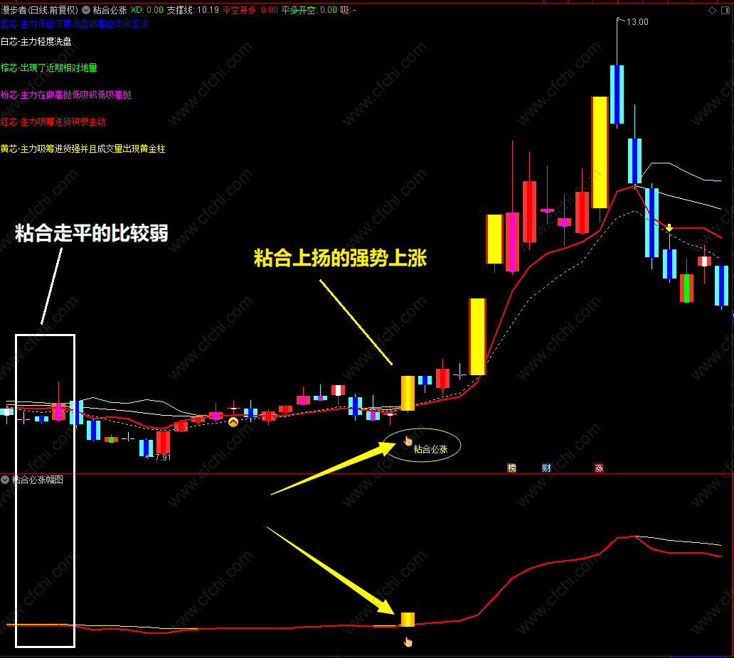 5、粘合天数1-2天比较弱,如果第三天继续粘合并大角度上扬,需要密切关注,可以适量买入!第4天继续粘合上扬的话,短期成妖概率非常大!注意把握机会哦!