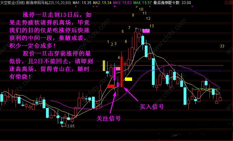 1.强势股回调时间周期:涨停回马枪的时间周期,一般强势股回调周期为第3天、第5天、第8天、第13天超过13天行情减弱;