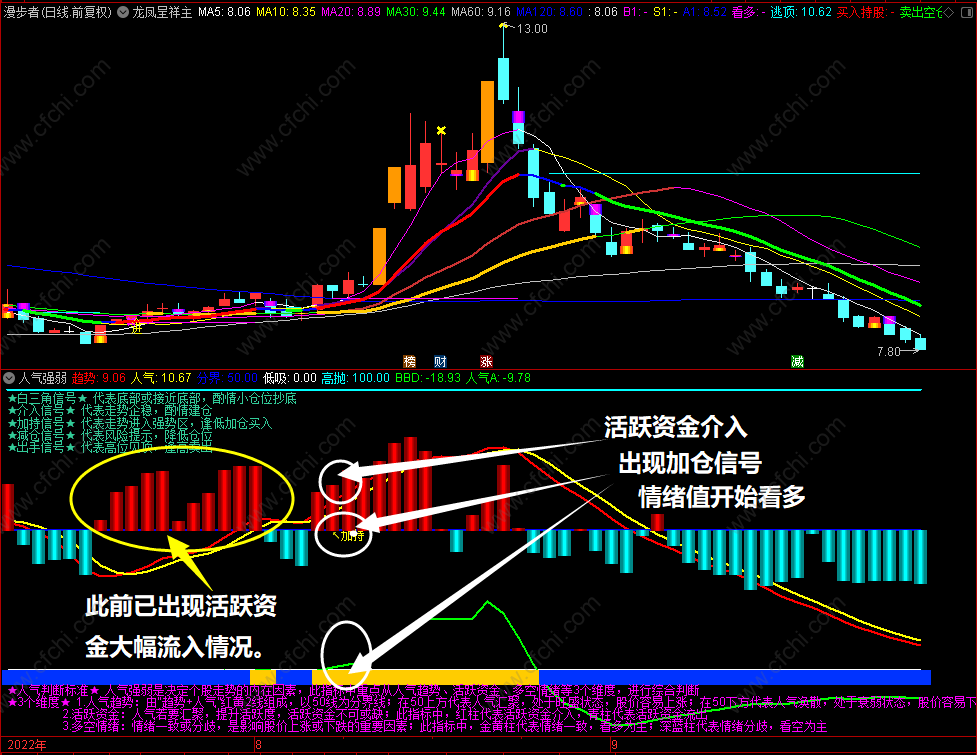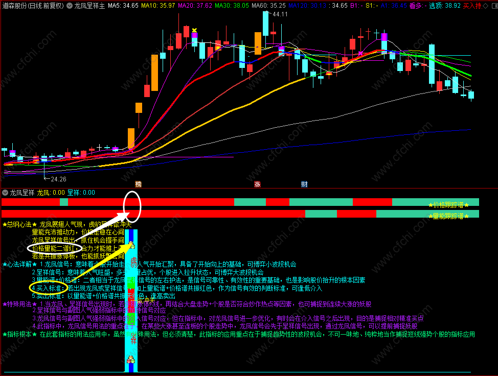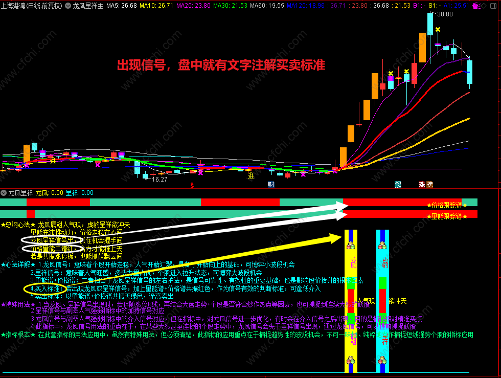 (通达信【龙凤呈祥】主幅图指标,盘中幅图上有文字注释解说,看盘一目了然,把握最佳趋势)