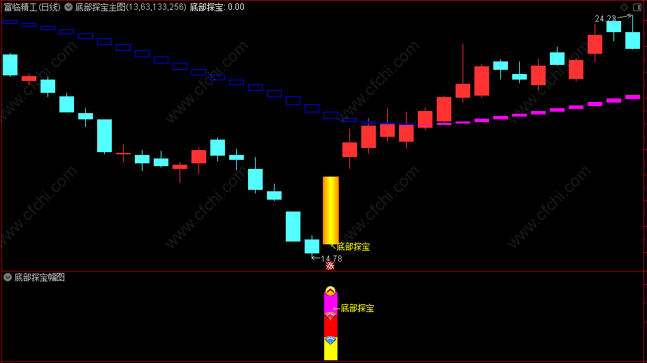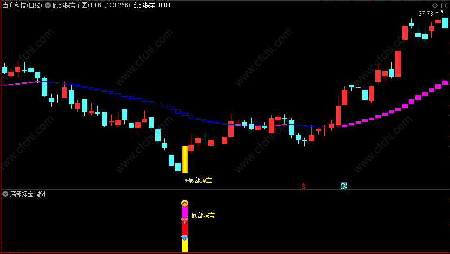 3、因为【底部探宝】是抄底指标,连续收阴线、天数越多的越好!