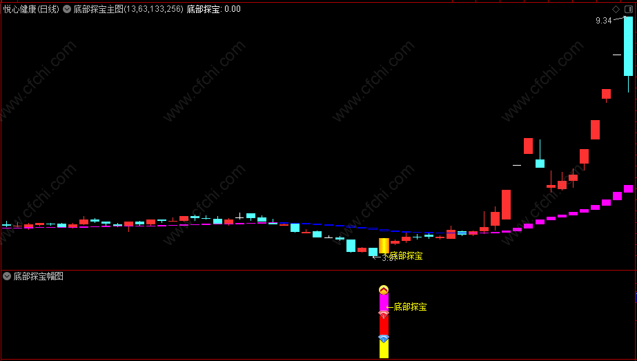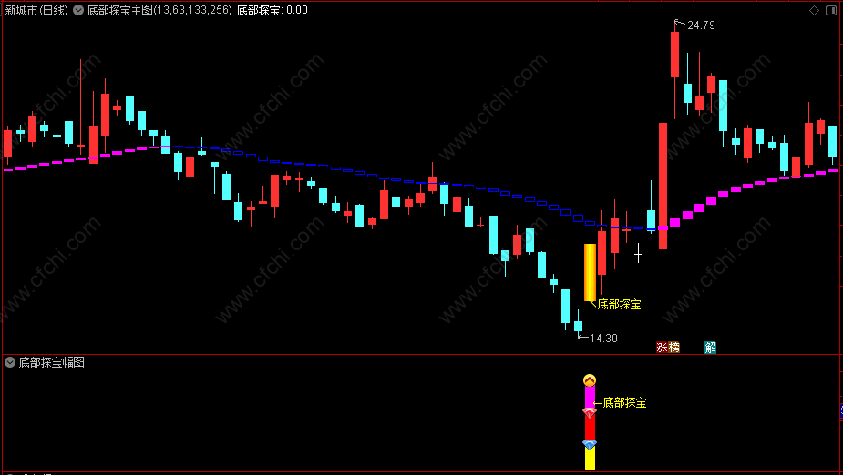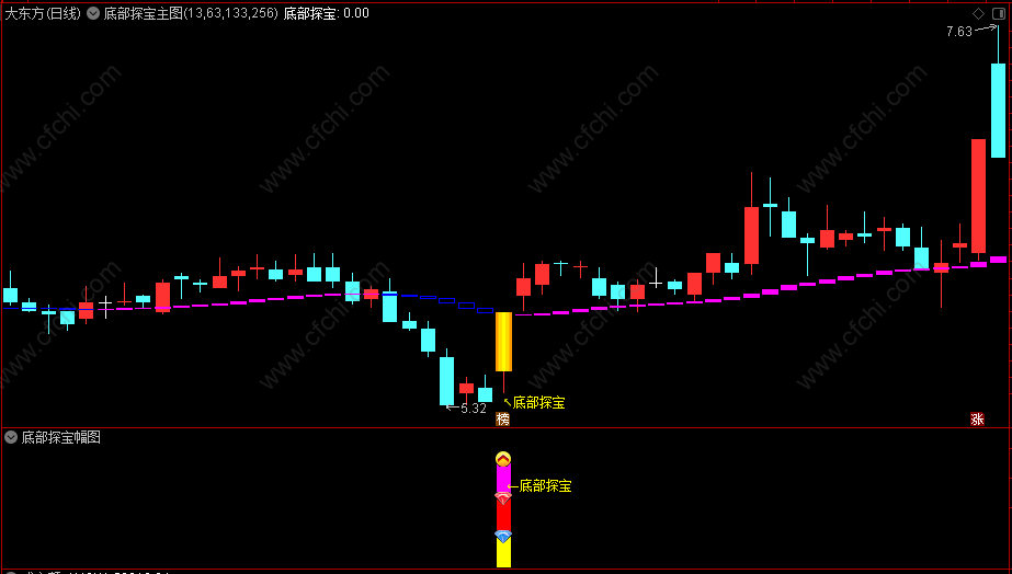1、 底部探宝指标自用多年短线实战指标,通过主力行为判断来捕捉强庄股!
