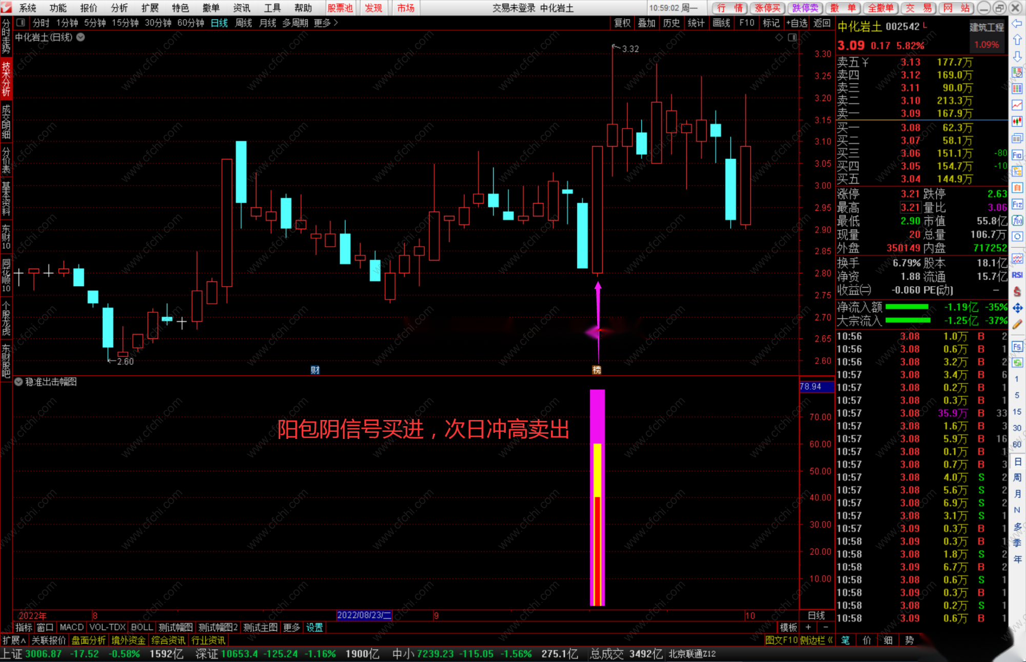 3,顶分型回踩后,阳线反包买进!