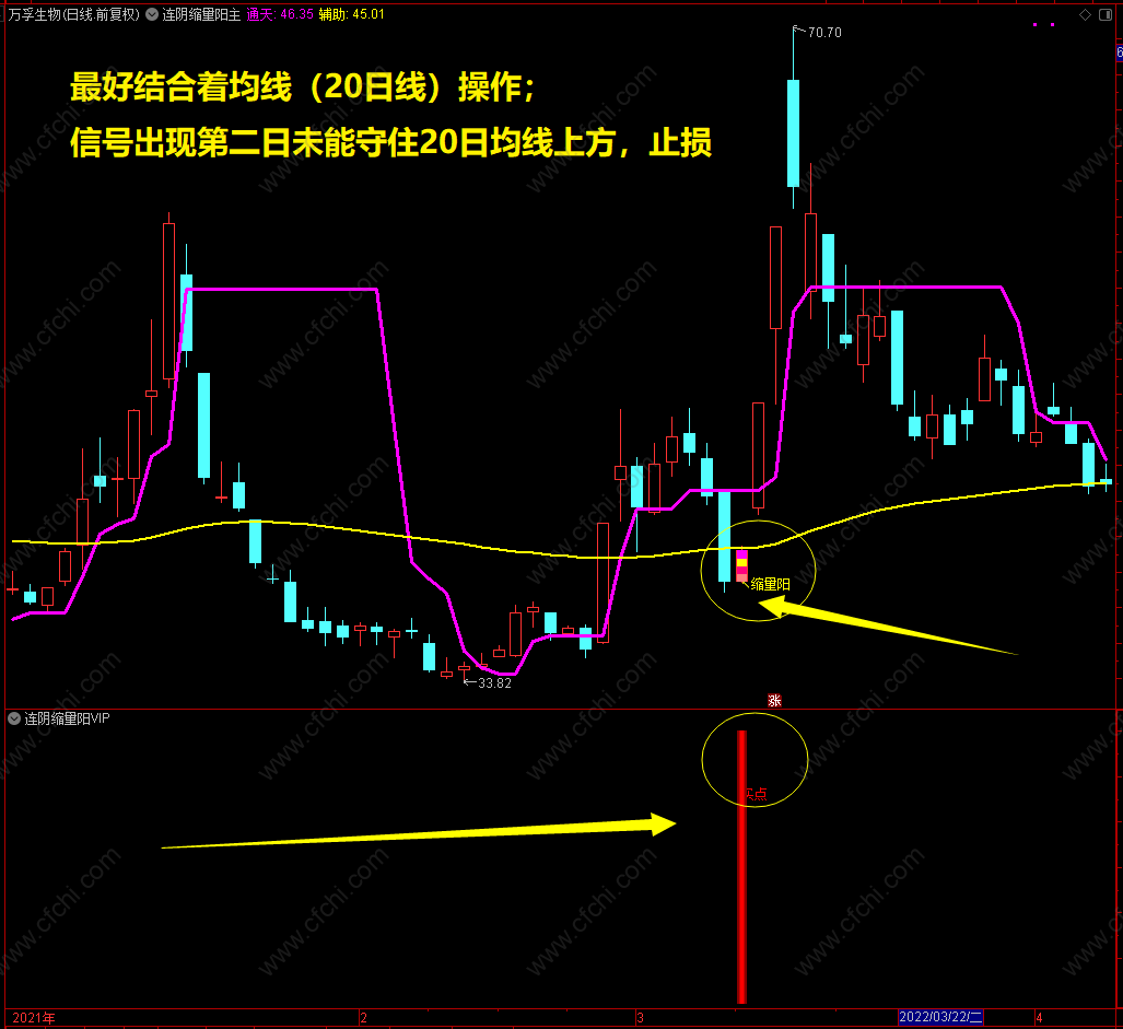 出现买点信号,并且K线不要离黄颜色粗线太远距离;
