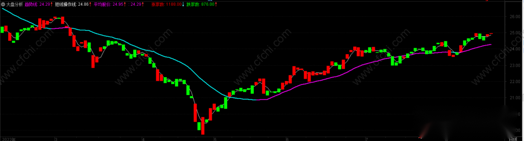 1.操作股票应遵循先大盘后个股的原则,当平均股价(880003)趋势线处于紫色区域时为可操作区域,此时,约80%的个股都在上涨,我们应把握机遇及时介入,想不挣钱都难;当平均股价趋势线处于青色区域时为不可操作区域,此时,约80%的个股都在下跌,我们应及时空仓规避风险,保存实力以利再战。个股短线操作可参考平均股价的短线操作线,向上拐头时入场,向下拐头时离场。