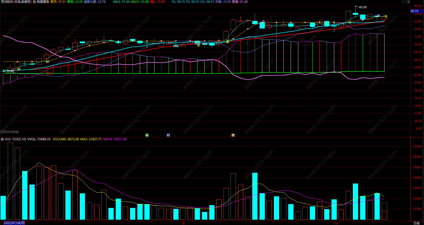 DRAWTEXT( CROSS(MA3 , 箱顶) AND C>箱顶,箱顶 , '追'),COLOR00EEAA;