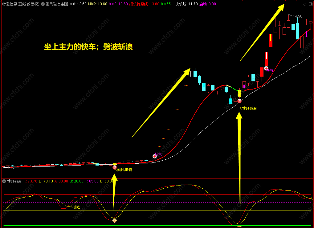 (通达信【乘风破浪套装】主幅图选股预警指标公式 擒牛绝技祝涨停 牛股狙击带您乘风破浪带你飞!)