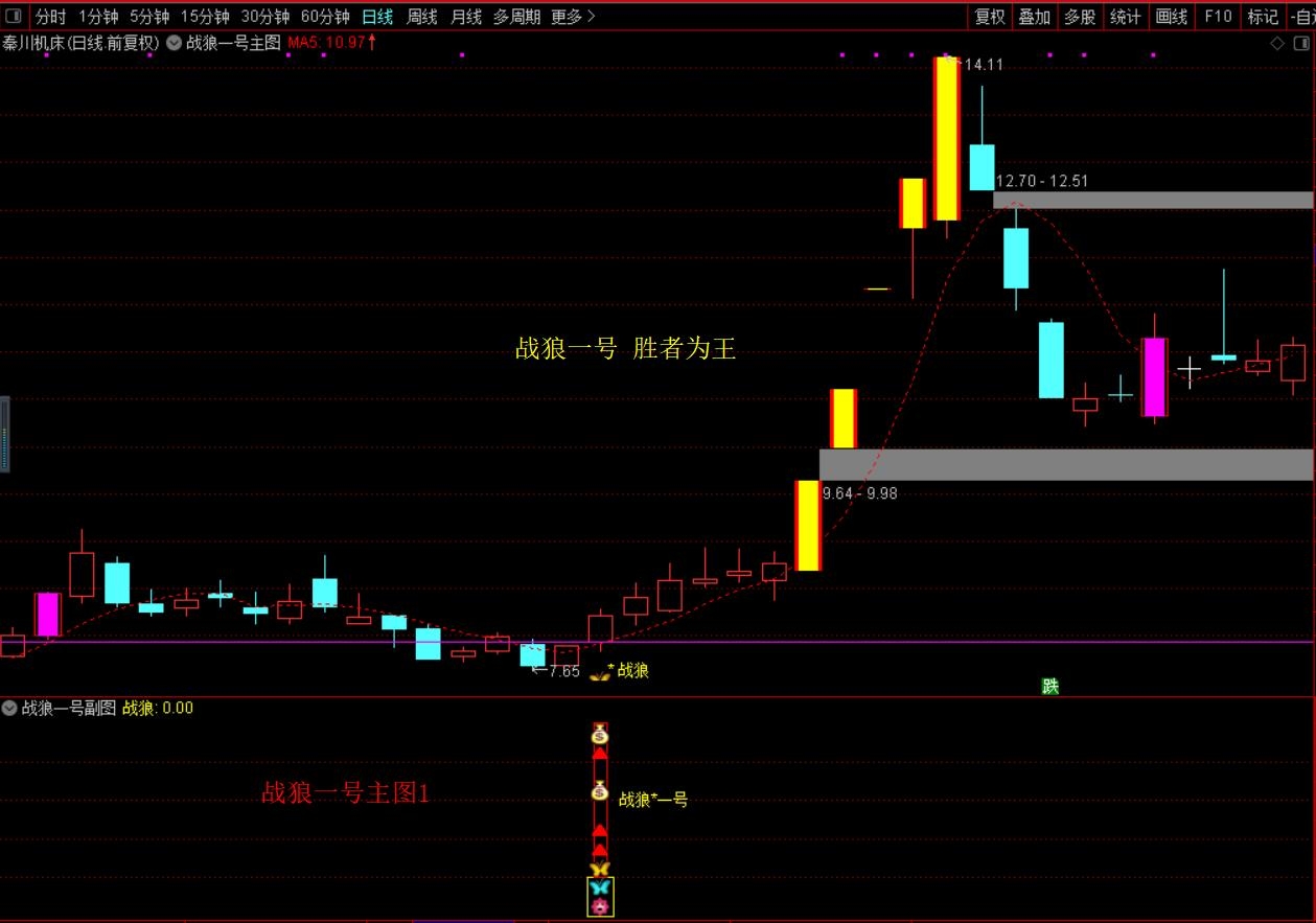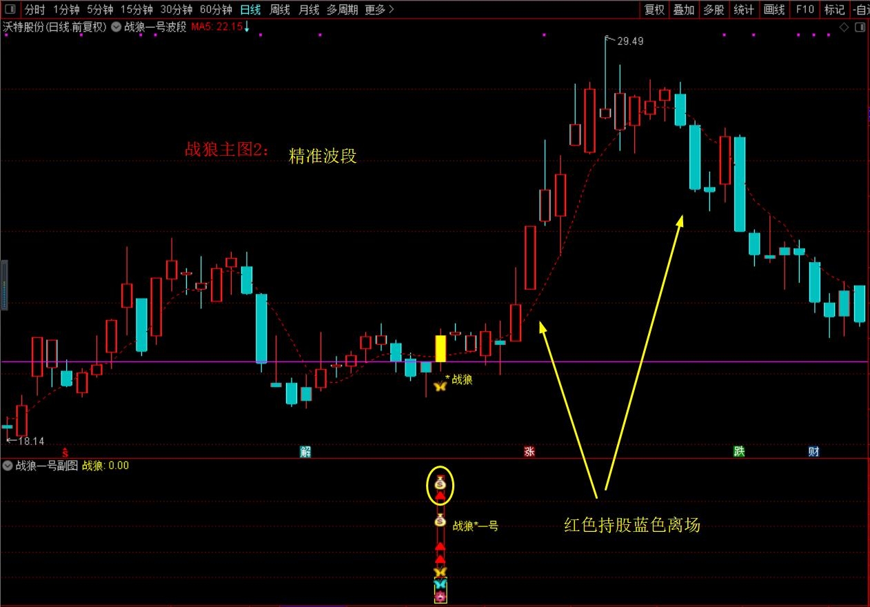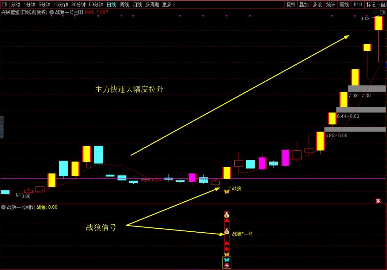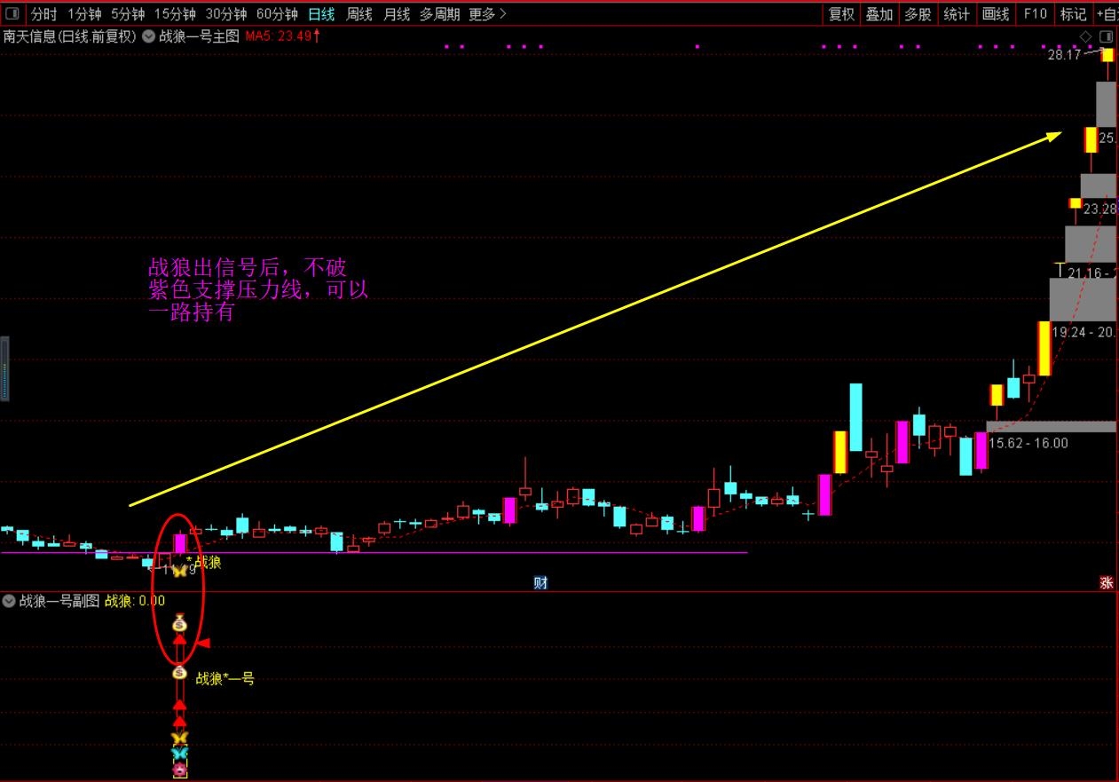 (珍藏优化版【战狼★一号】胜者为王、终极盈利模式,主图+副图+选股,套装源码指标分享)