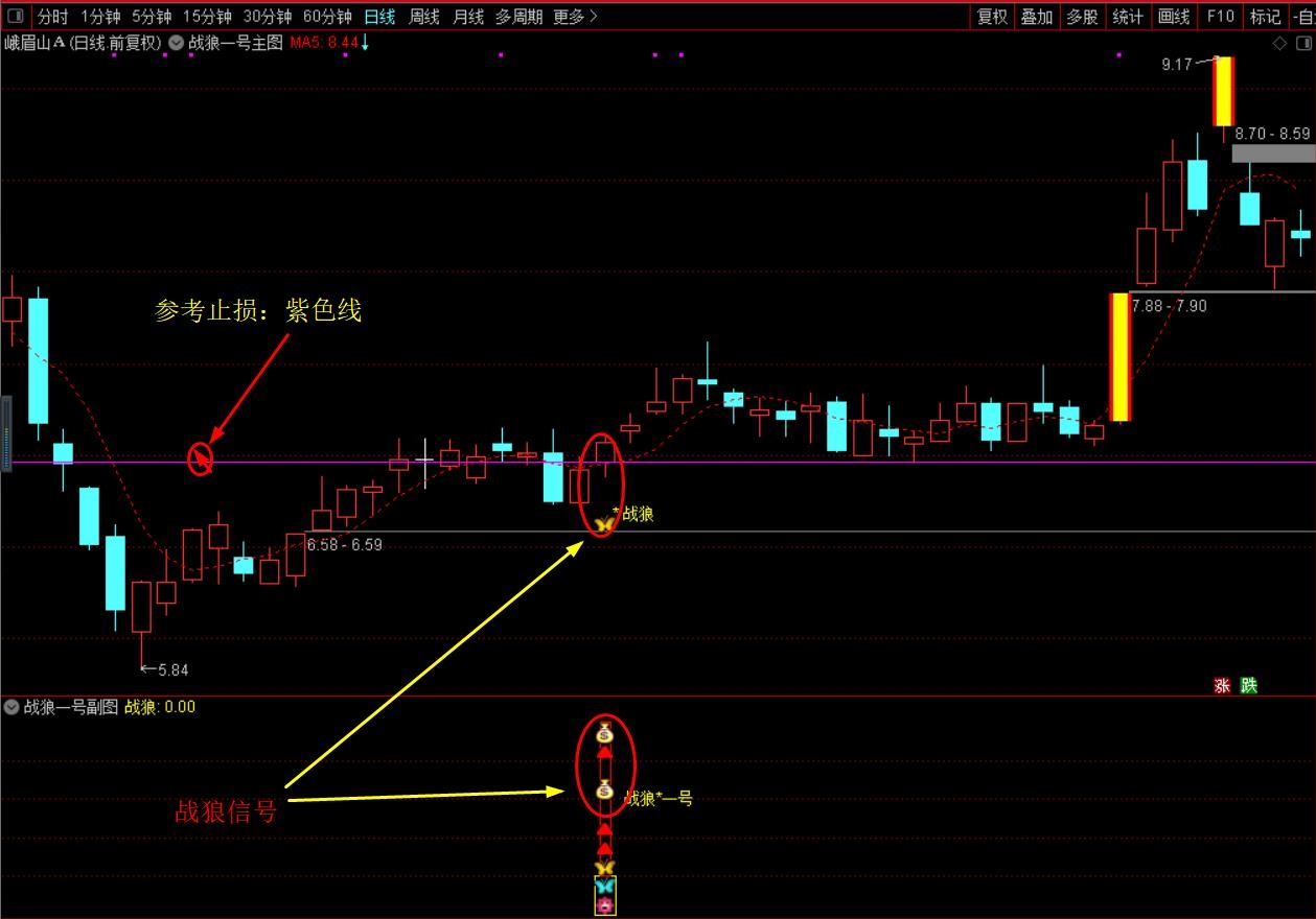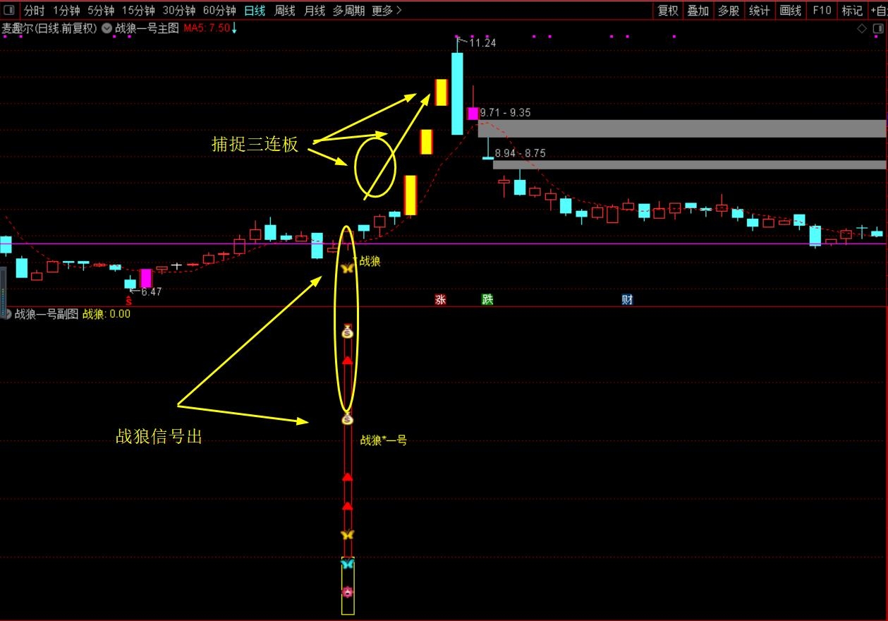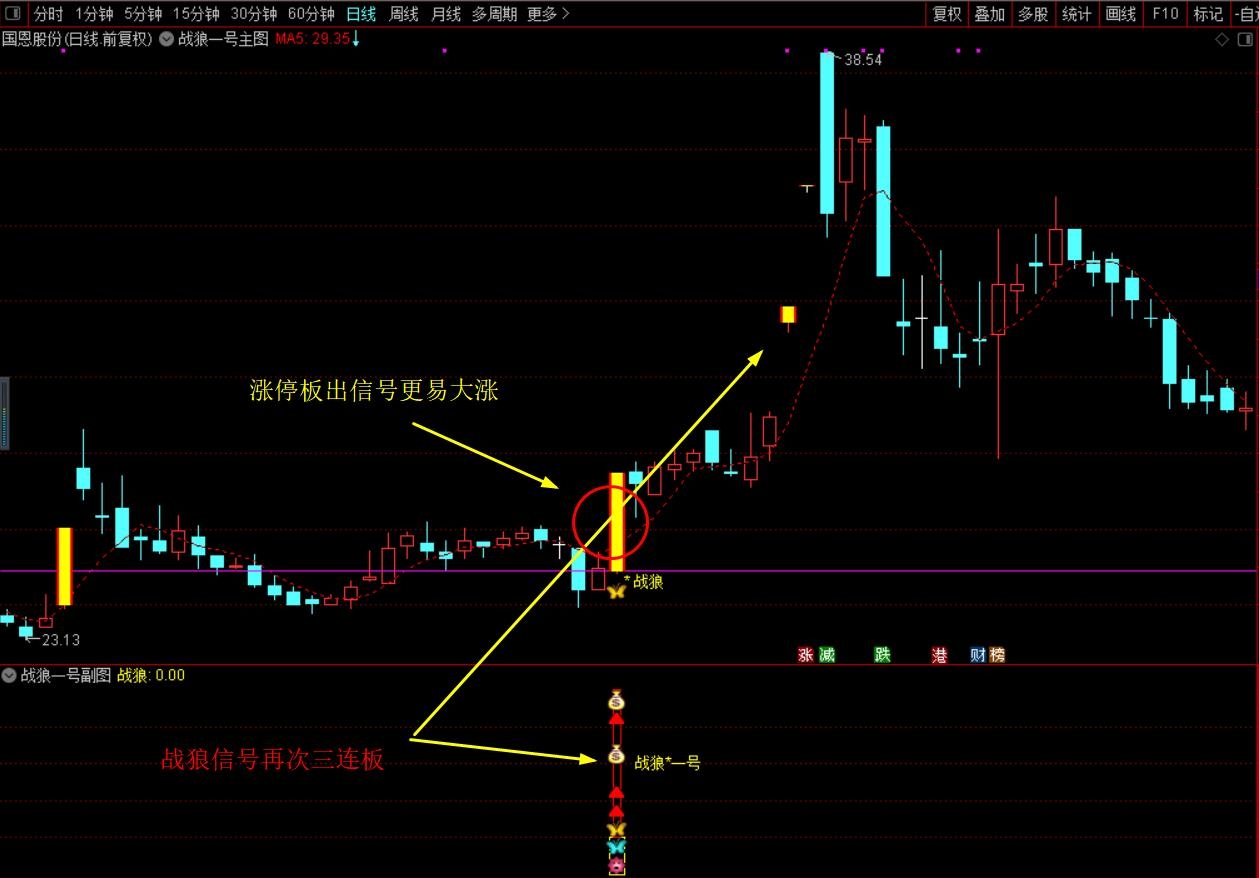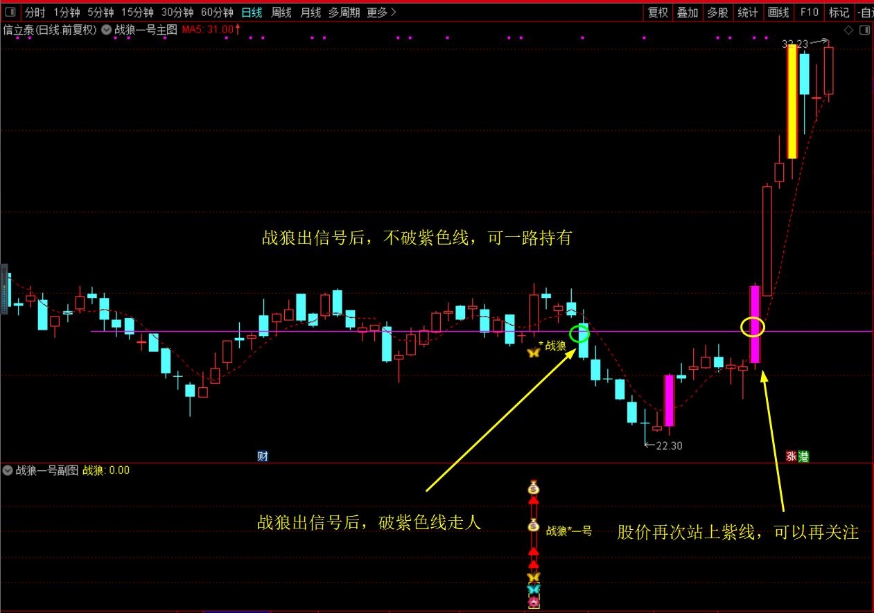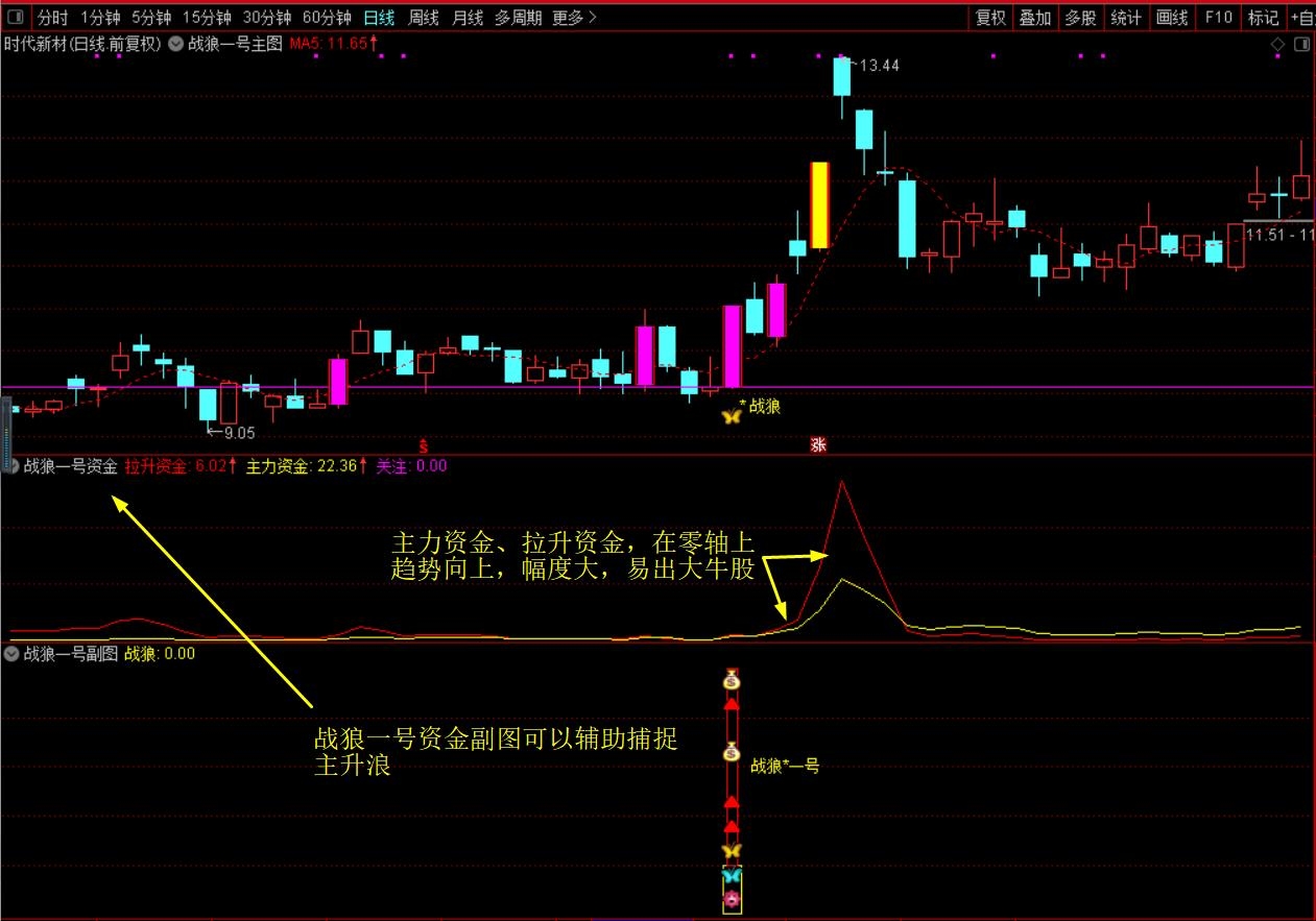 (珍藏优化版【战狼★一号】胜者为王、终极盈利模式,主图+副图+选股,套装源码指标分享)