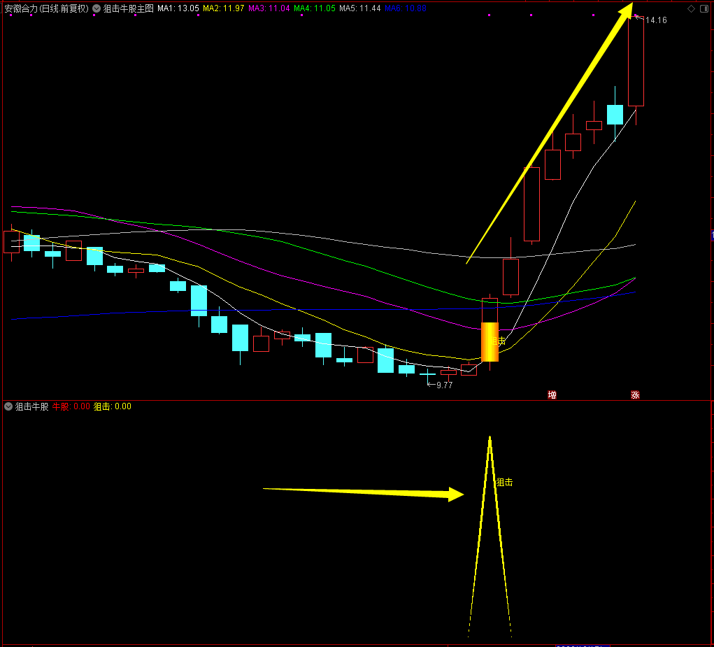 狙击牛股套装指标是一款极具实战操作价值的中短线实战指标,继承一如既往的优秀品质,轻松实现中短线暴涨,享受被主力强势拉升的快感。指标能够捕捉庄家主力异动苗头,快速介入后收获丰厚利润;本指标捕捉高度控盘主力凶狠快速洗盘,然后快速暴力拉升封住涨停或连续涨停的个股!以达到短线快速获利止盈目标!