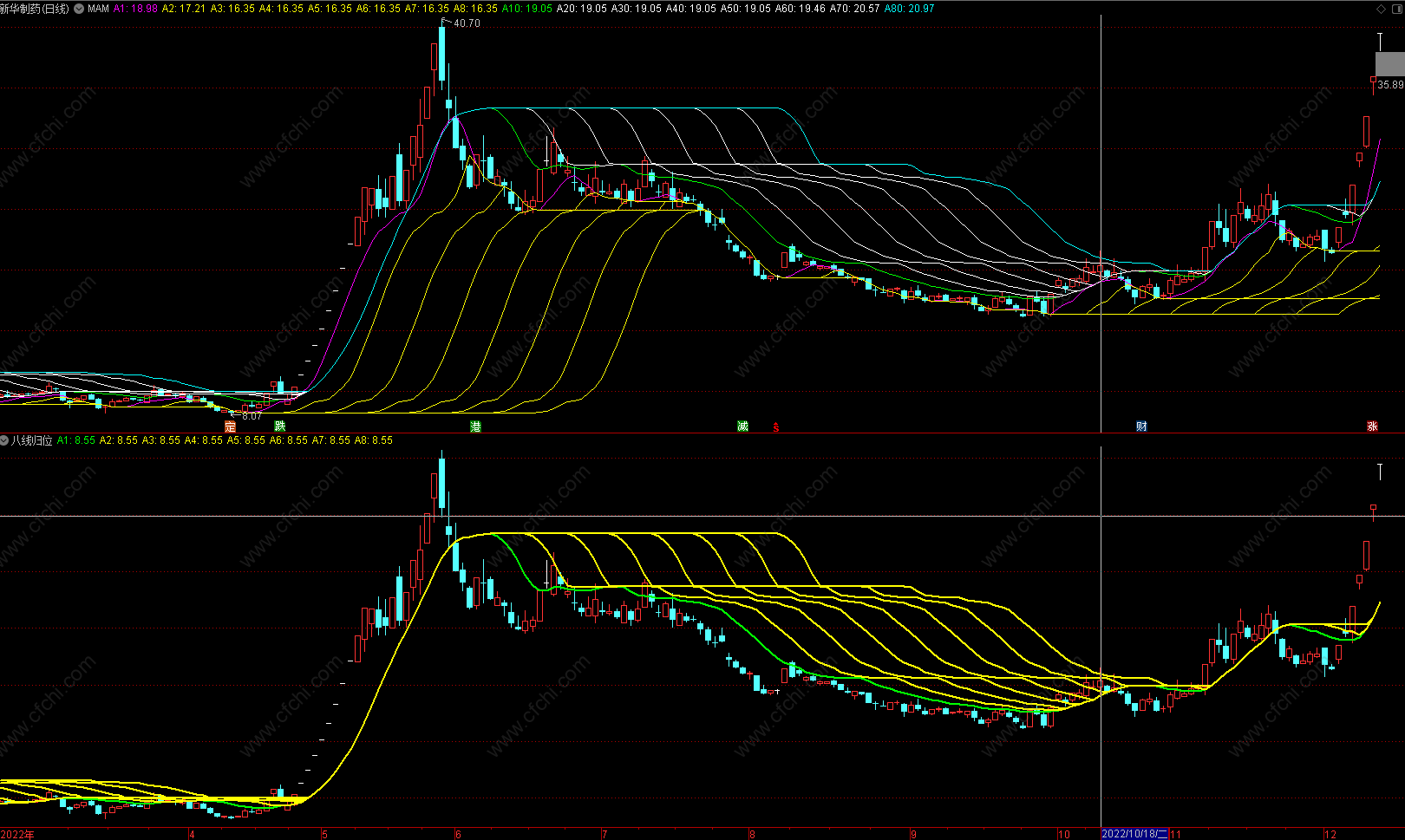最后八条线合为一,成为大牛股;
