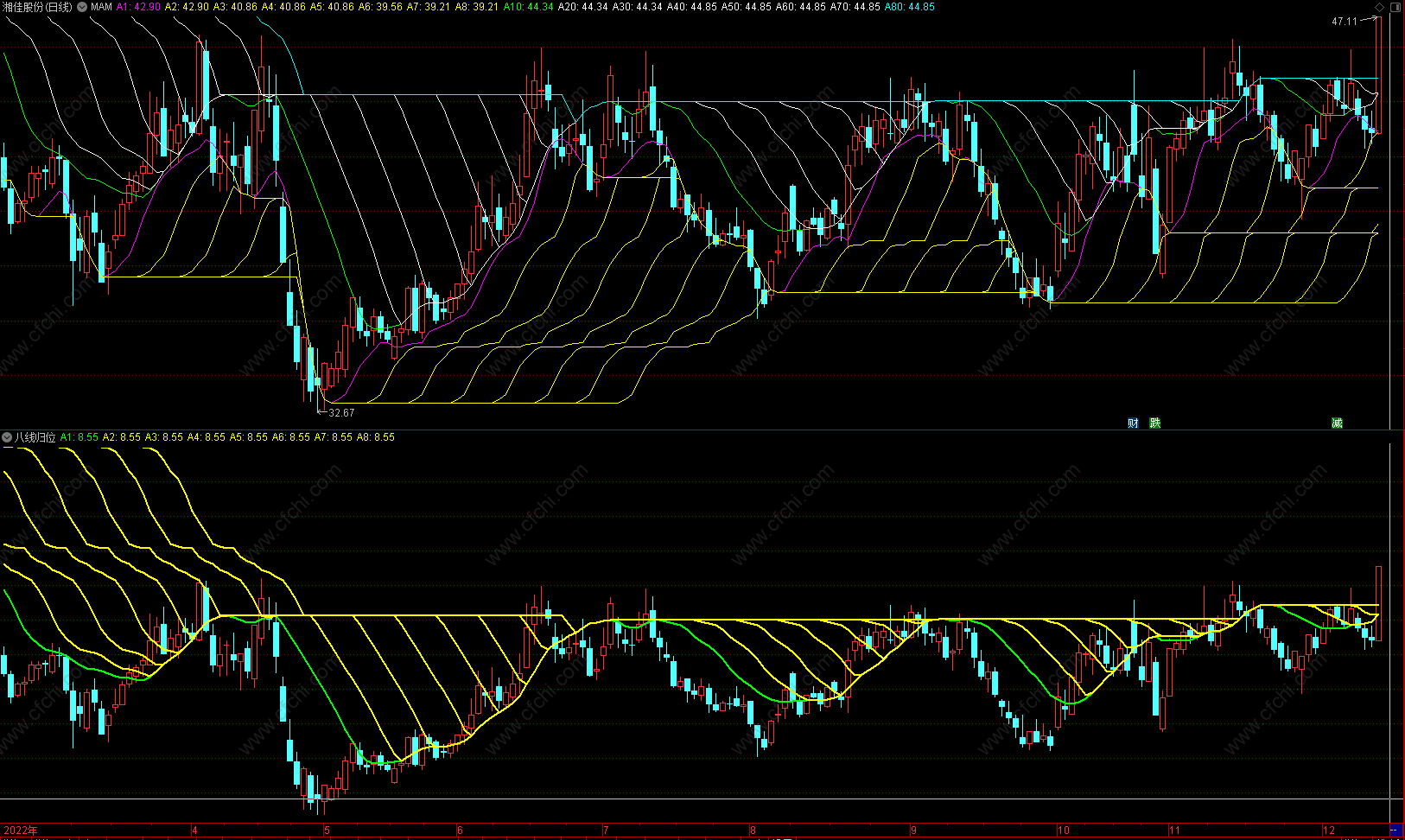 (通达信霸气八线归位主副图指标,八线粘合、向上幅度大于30°∠ 那么极易形成妖,源码分享)