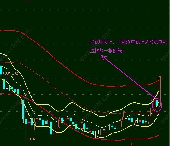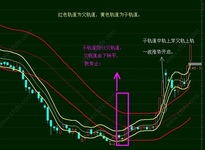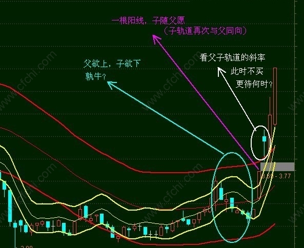 通达信赢家双轨线主图指标,重在研透各种各样的主轨道(也称为父轨道)和子轨道关系,子轨道回父轨道,子轨道中轨上穿父轨道中轨,子轨道中轨上穿父轨上轨,父轨道走向变化及轨道斜率,子轨道轨道斜率等等。